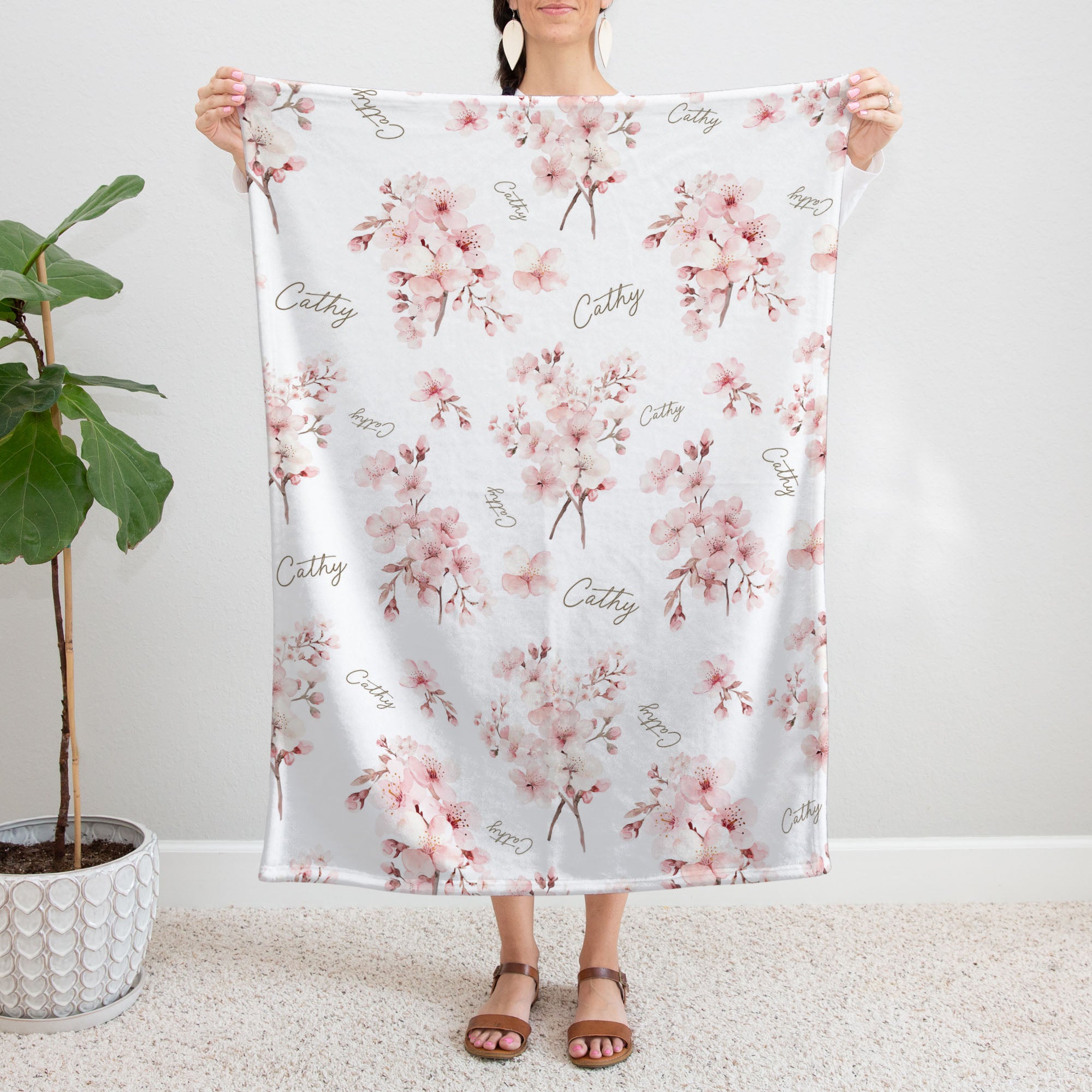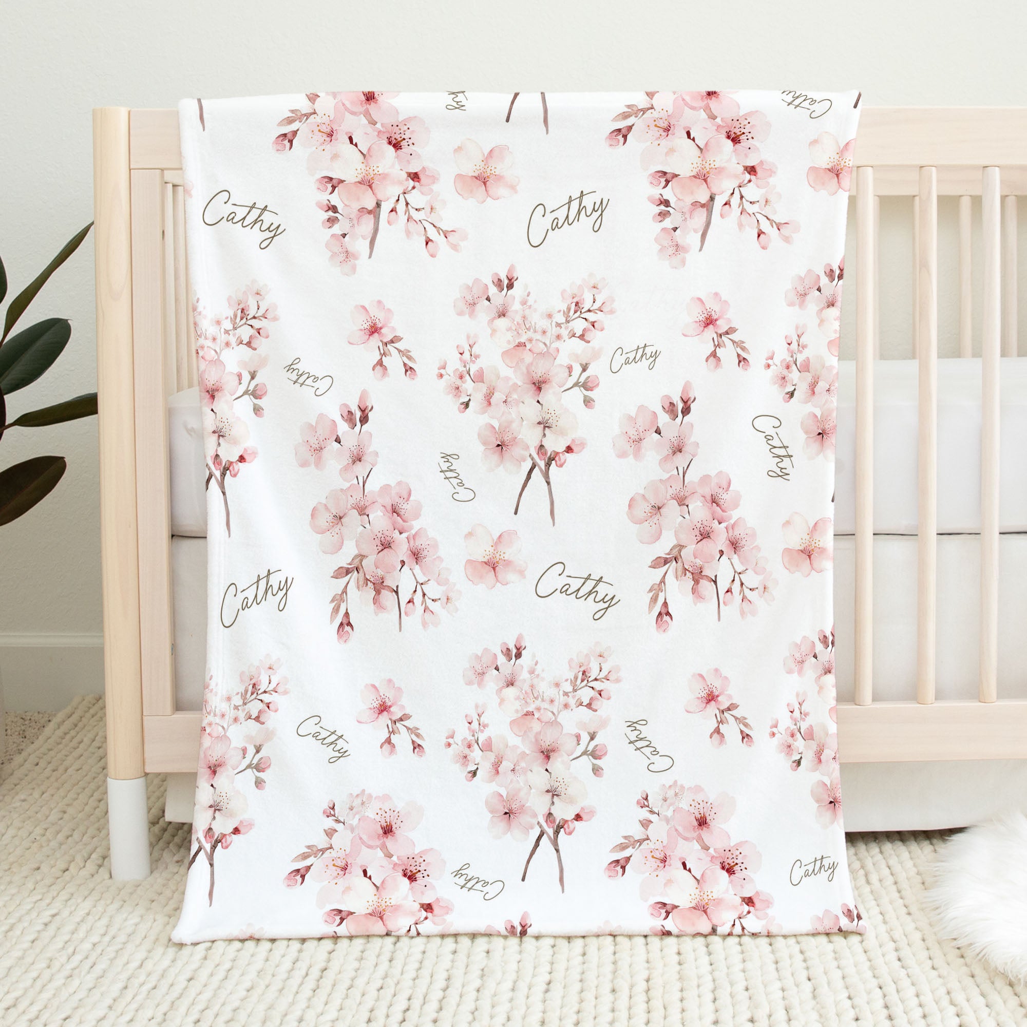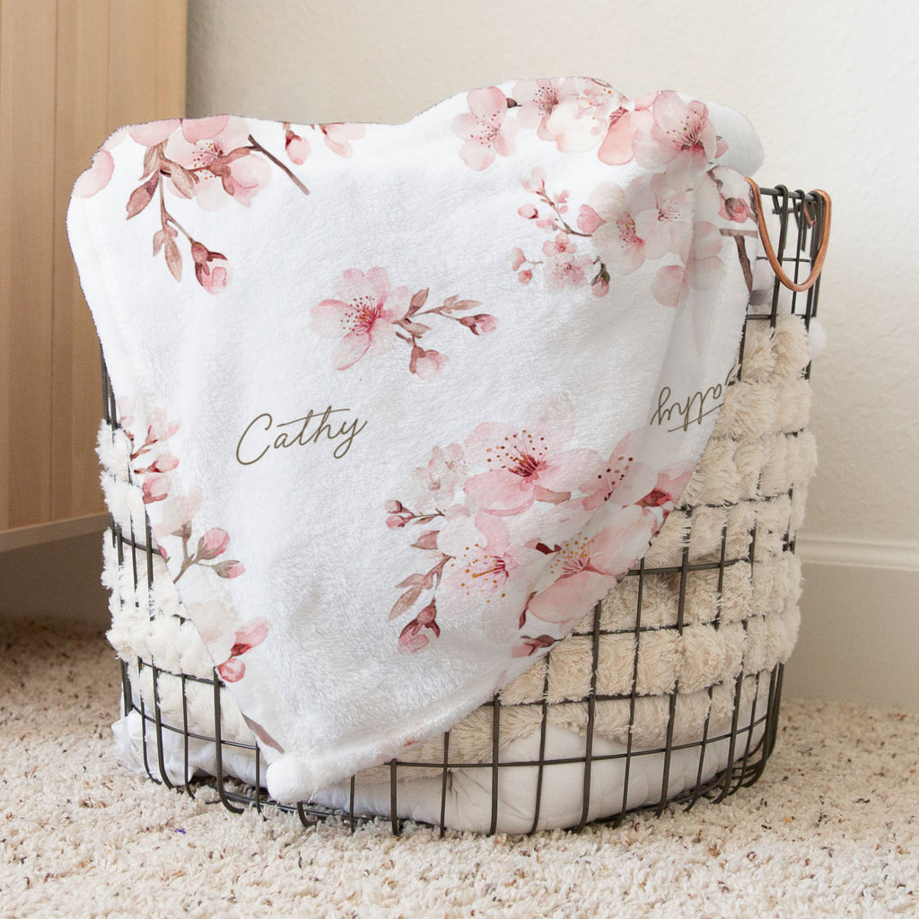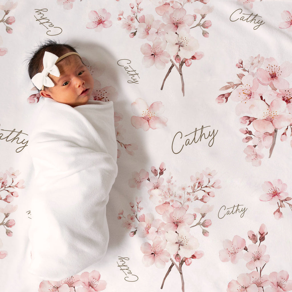 Cherry Blossoms personalized baby blanket