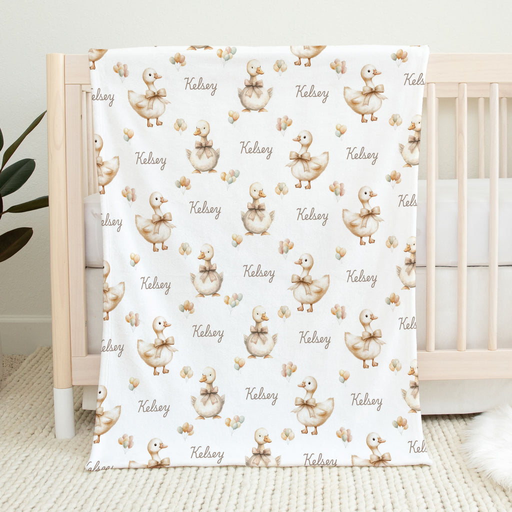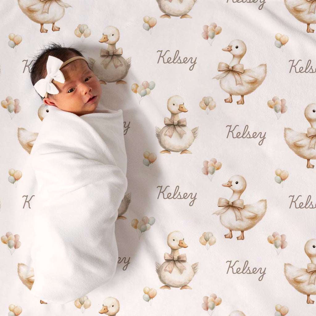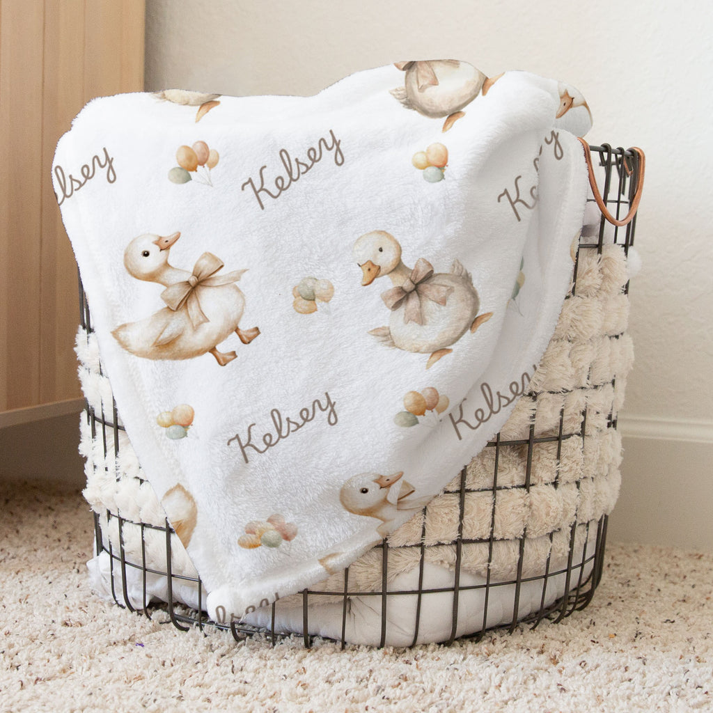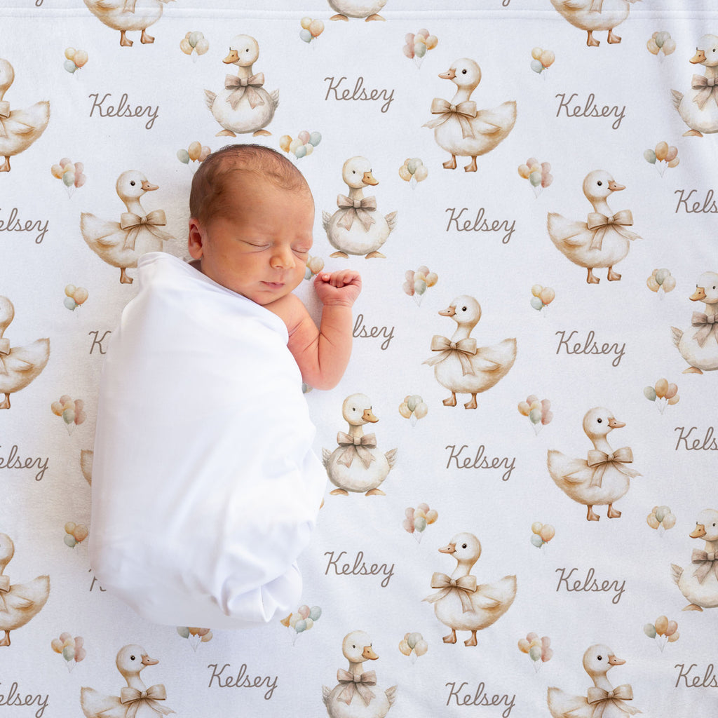 Made from a super soft fleece or minky material in a receiving blanket size of 30” x 40", this blanket is sure to become a favorite. It's perfect to wrap baby in, use in the stroller or as a one of a kind photo backdrop and makes a very popular baby shower or new baby gift.