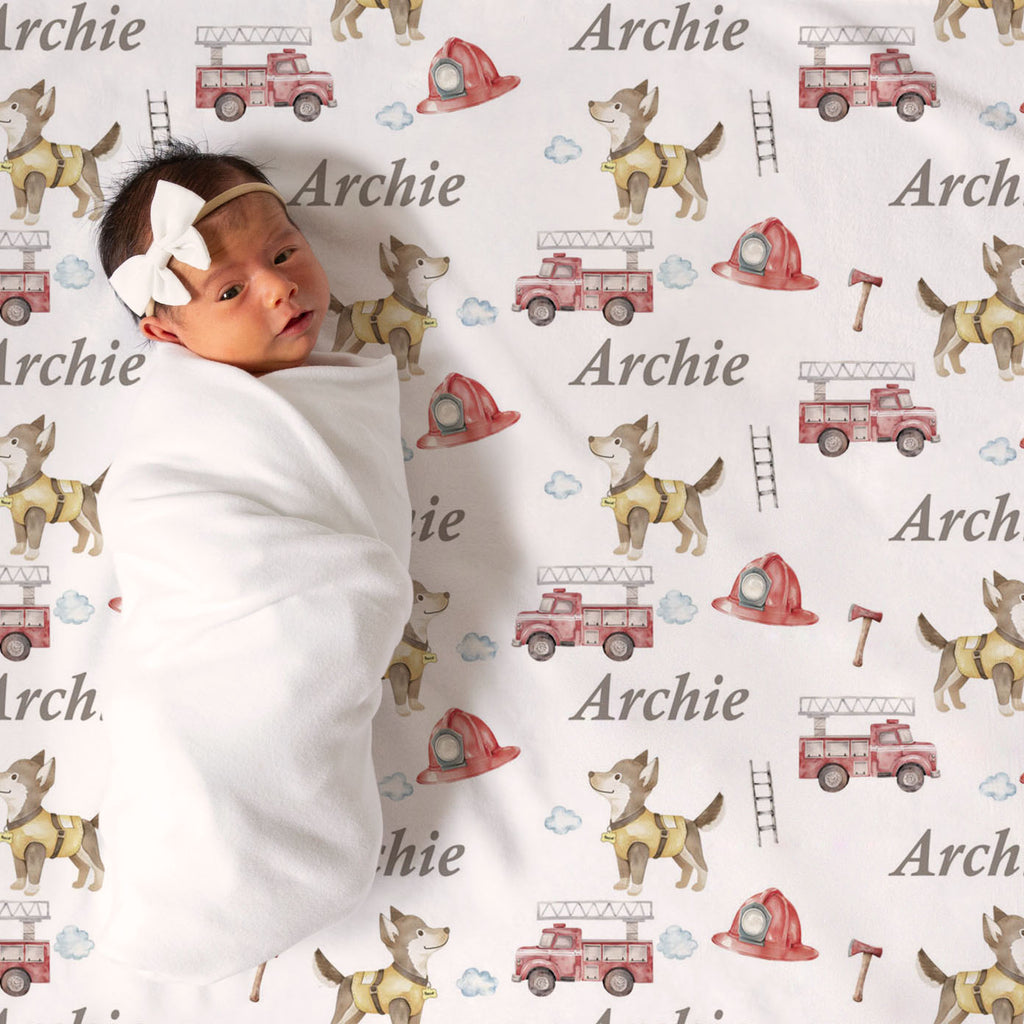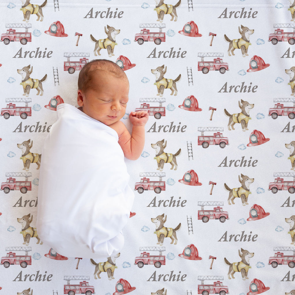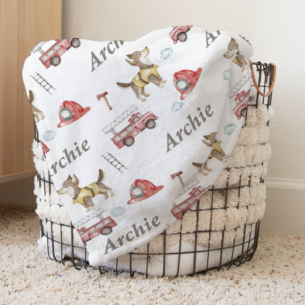 Made from a super soft fleece or minky material in a receiving blanket size of 30” x 40", this blanket is sure to become a favorite. It's perfect to wrap baby in, use in the stroller or as a one of a kind photo backdrop and makes a very popular baby shower or new baby gift.