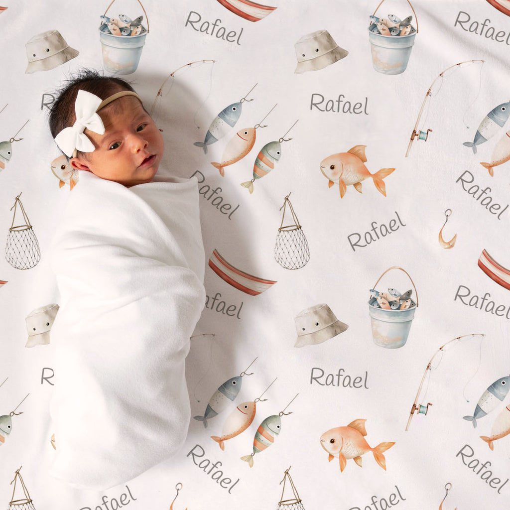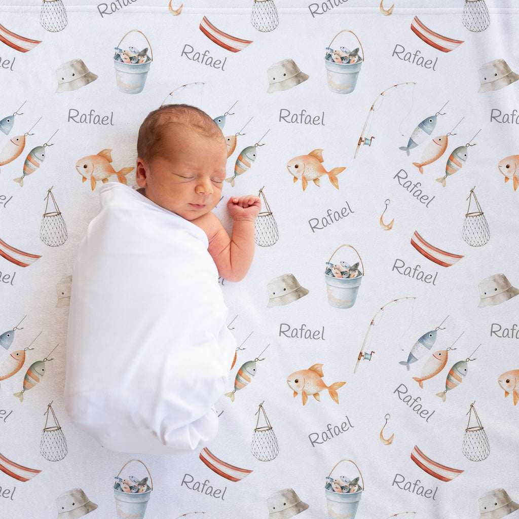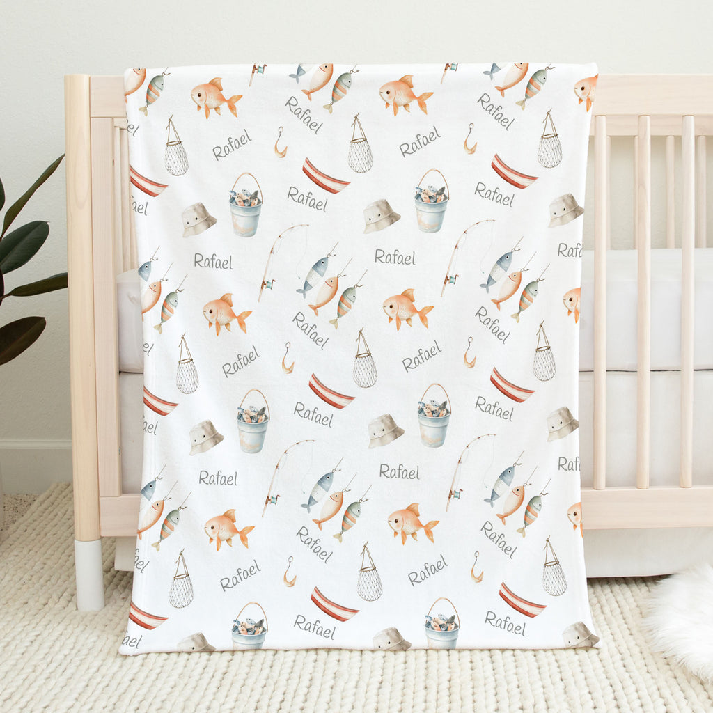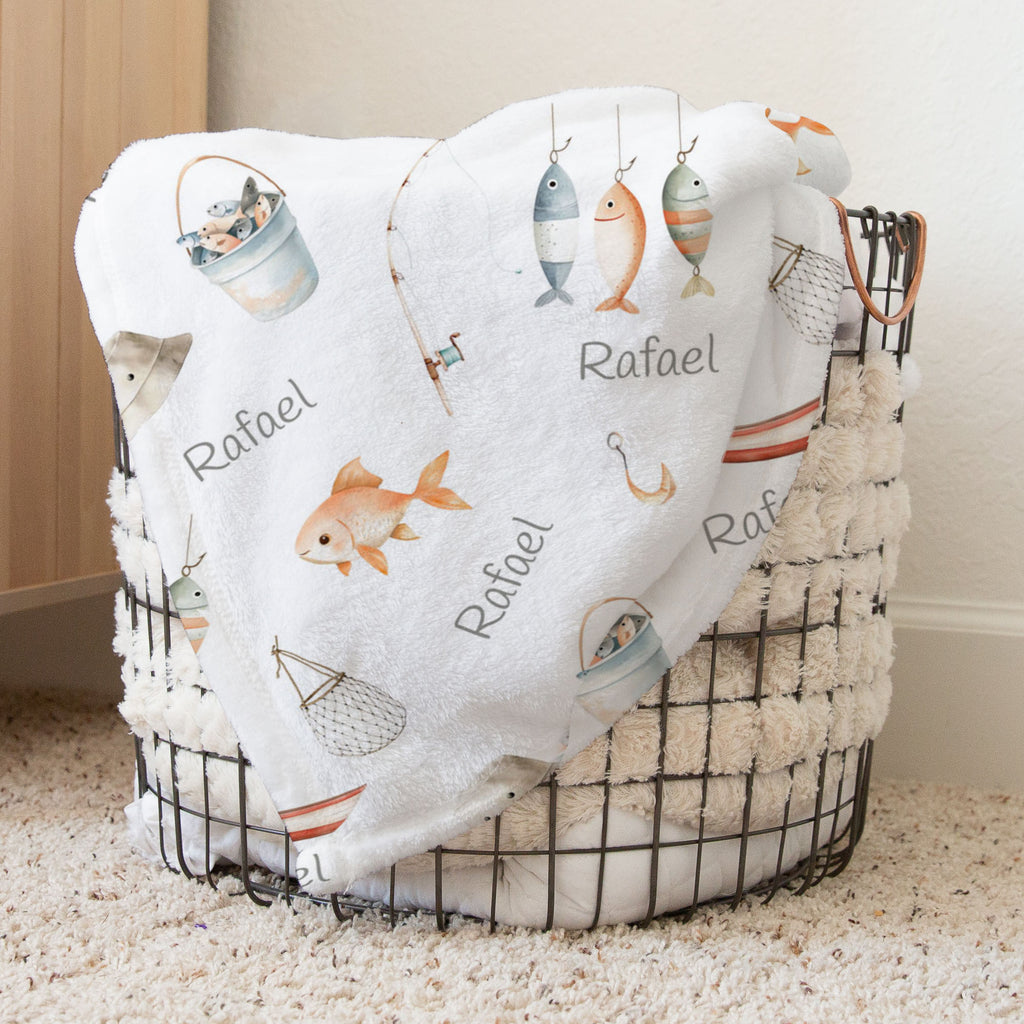 Made from a super soft fleece or minky material in a receiving blanket size of 30” x 40", this blanket is sure to become a favorite. It's perfect to wrap baby in, use in the stroller or as a one of a kind photo backdrop and makes a very popular baby shower or new baby gift.