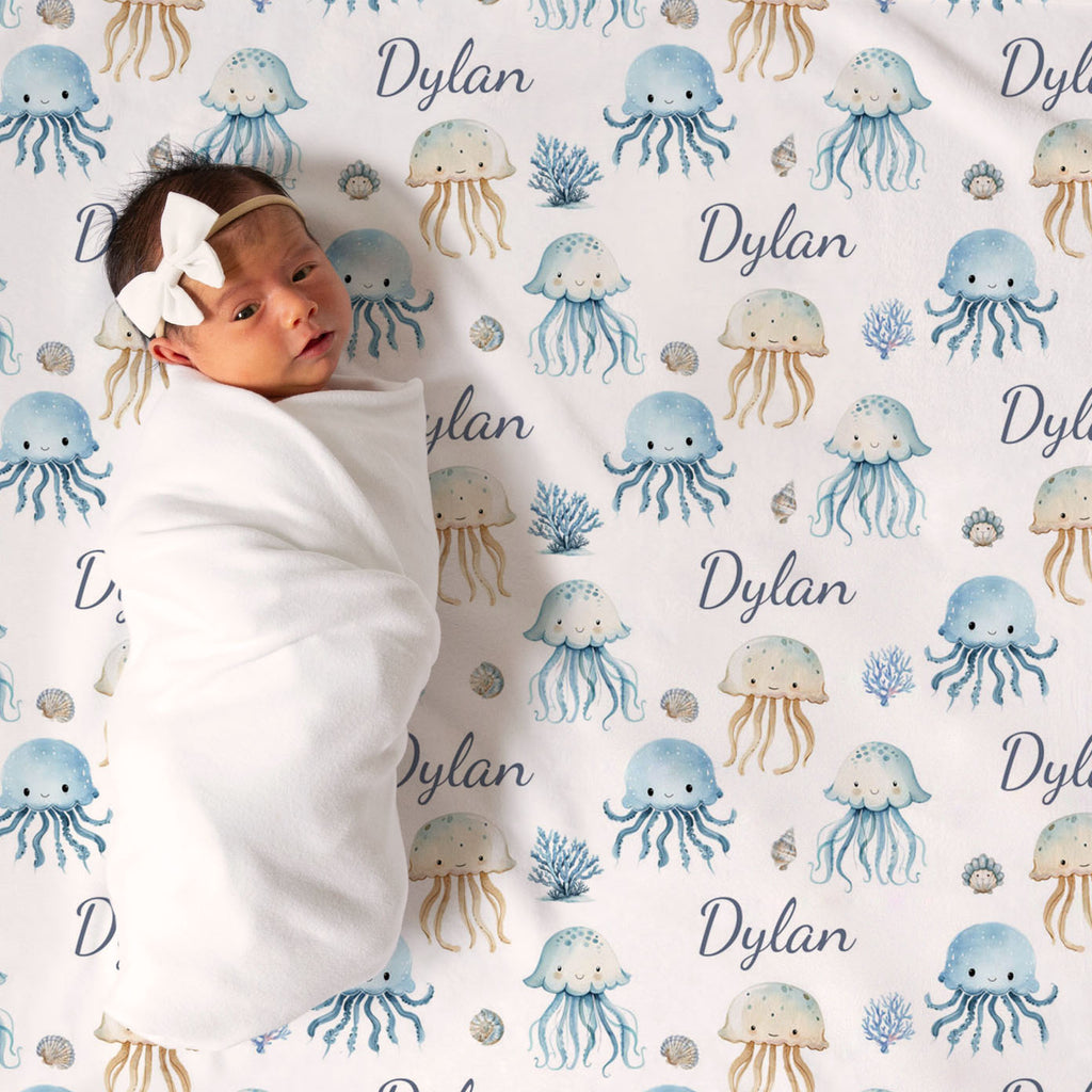 Jolly Jellyfish personalized baby blanket