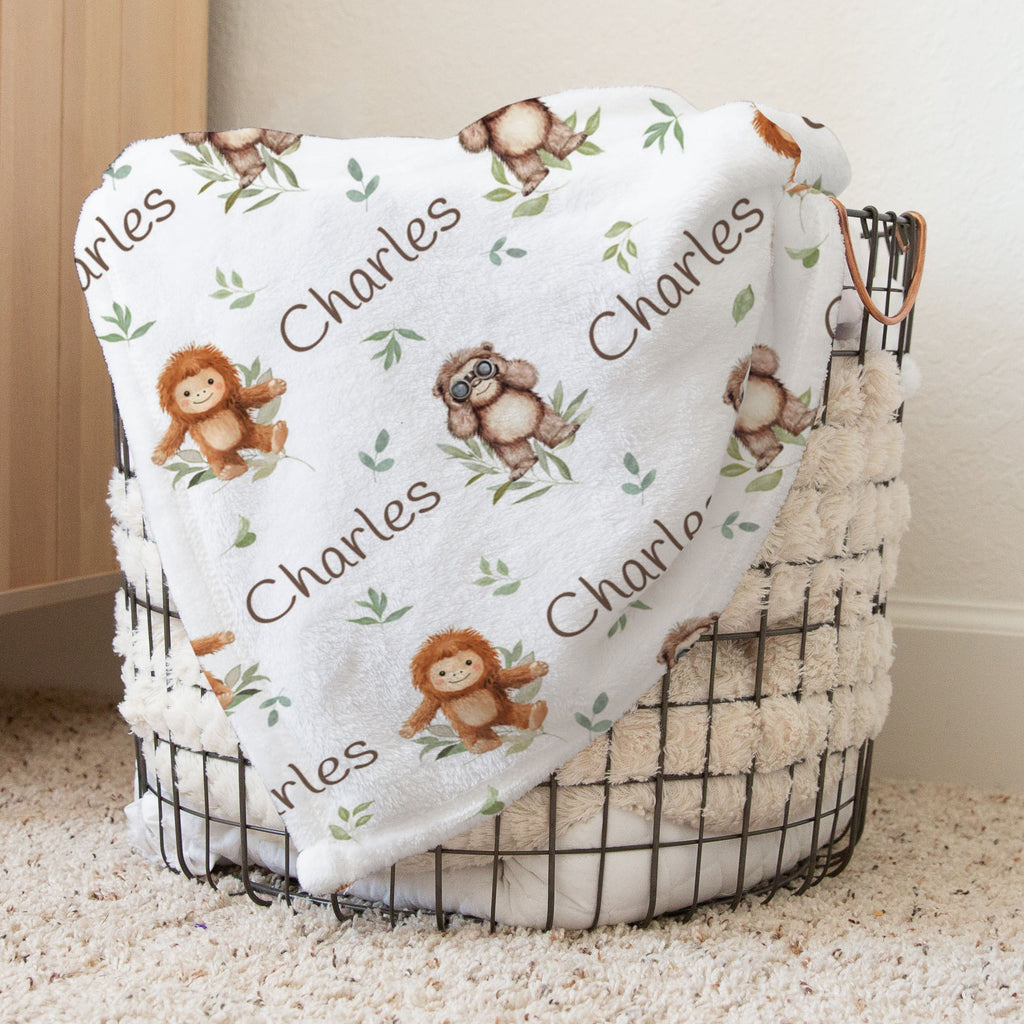 Made from a super soft fleece or minky material in a receiving blanket size of 30” x 40", this blanket is sure to become a favorite. It's perfect to wrap baby in, use in the stroller or as a one of a kind photo backdrop and makes a very popular baby shower or new baby gift.