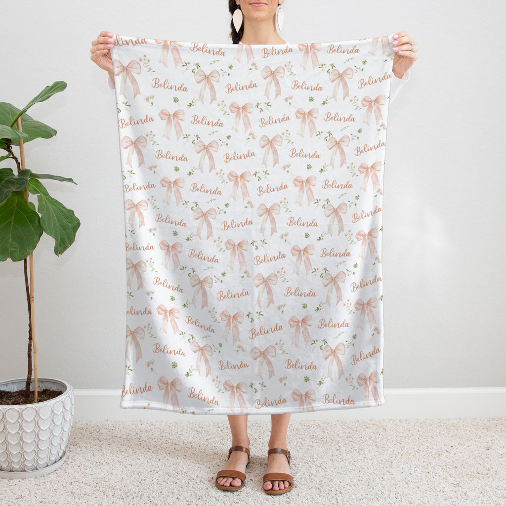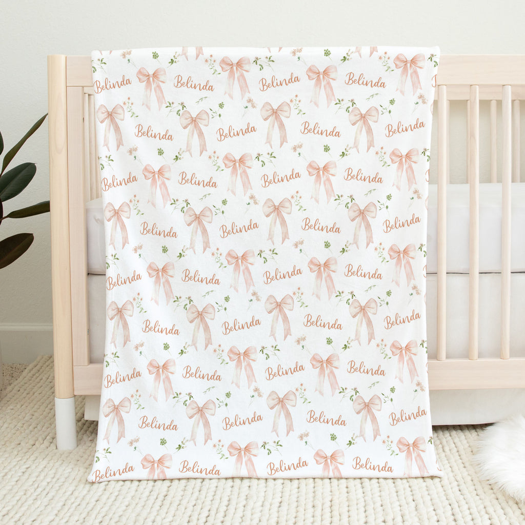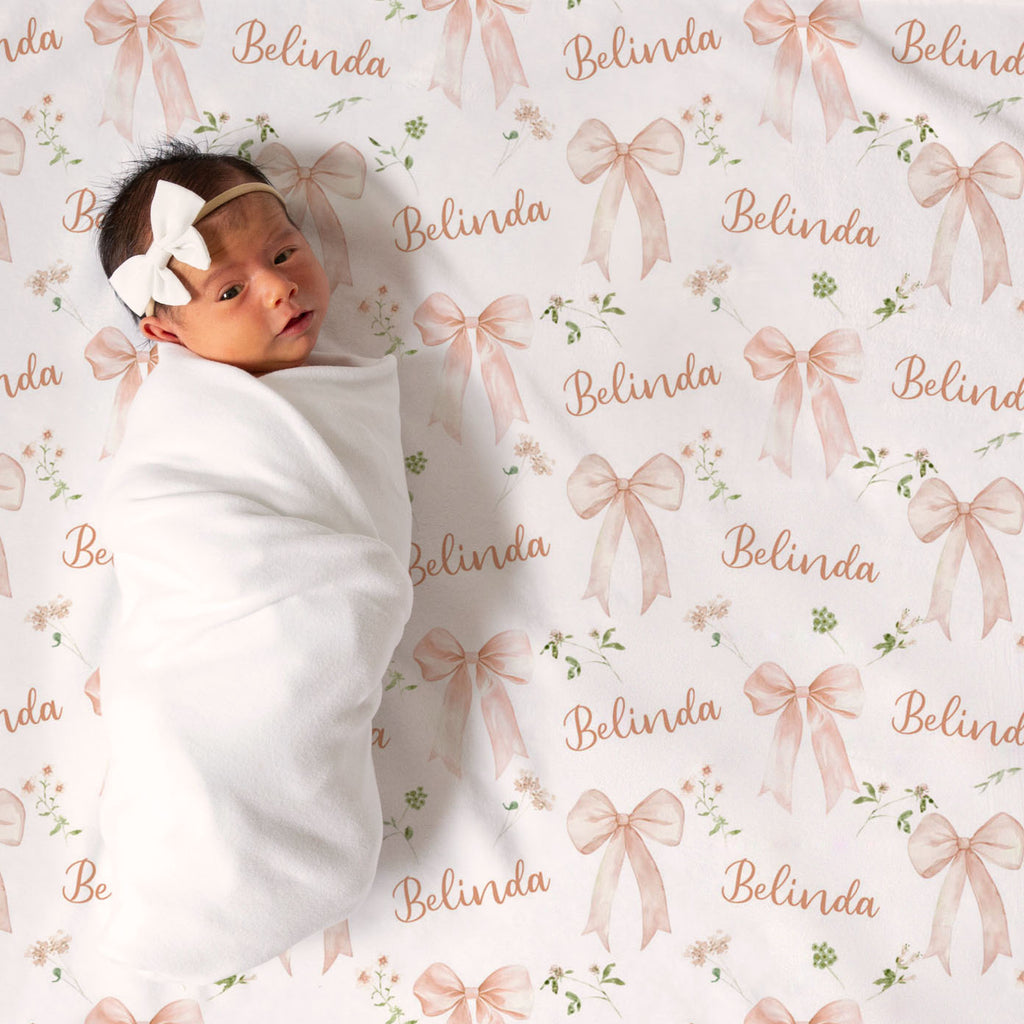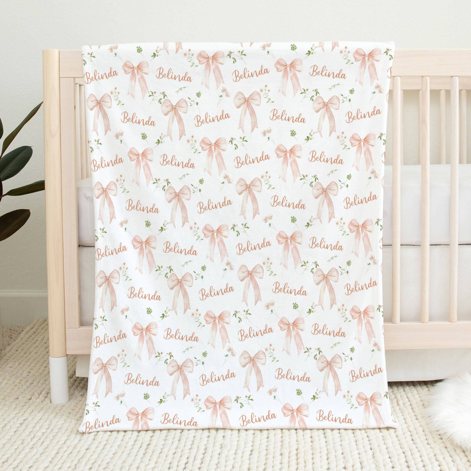 Made from a super soft fleece or minky material in a receiving blanket size of 30” x 40", this blanket is sure to become a favorite. It's perfect to wrap baby in, use in the stroller or as a one of a kind photo backdrop and makes a very popular baby shower or new baby gift.
