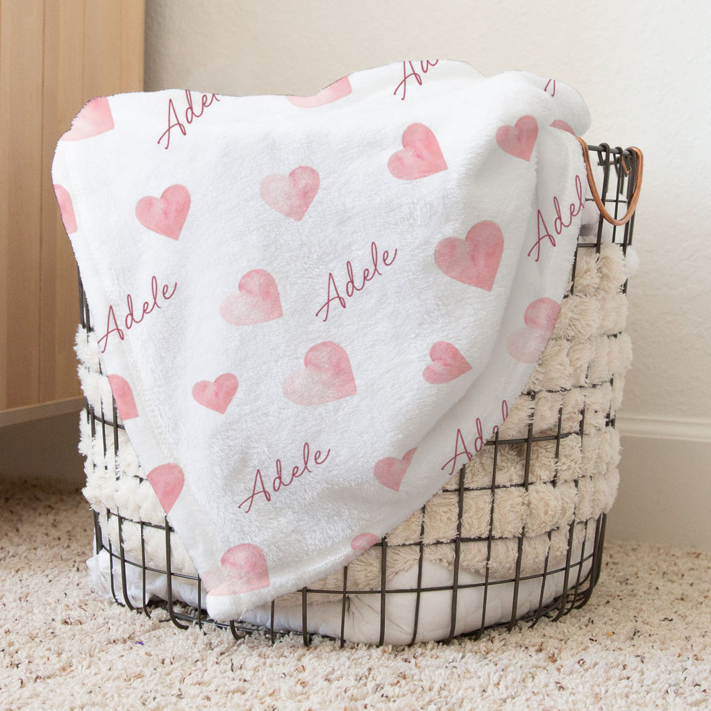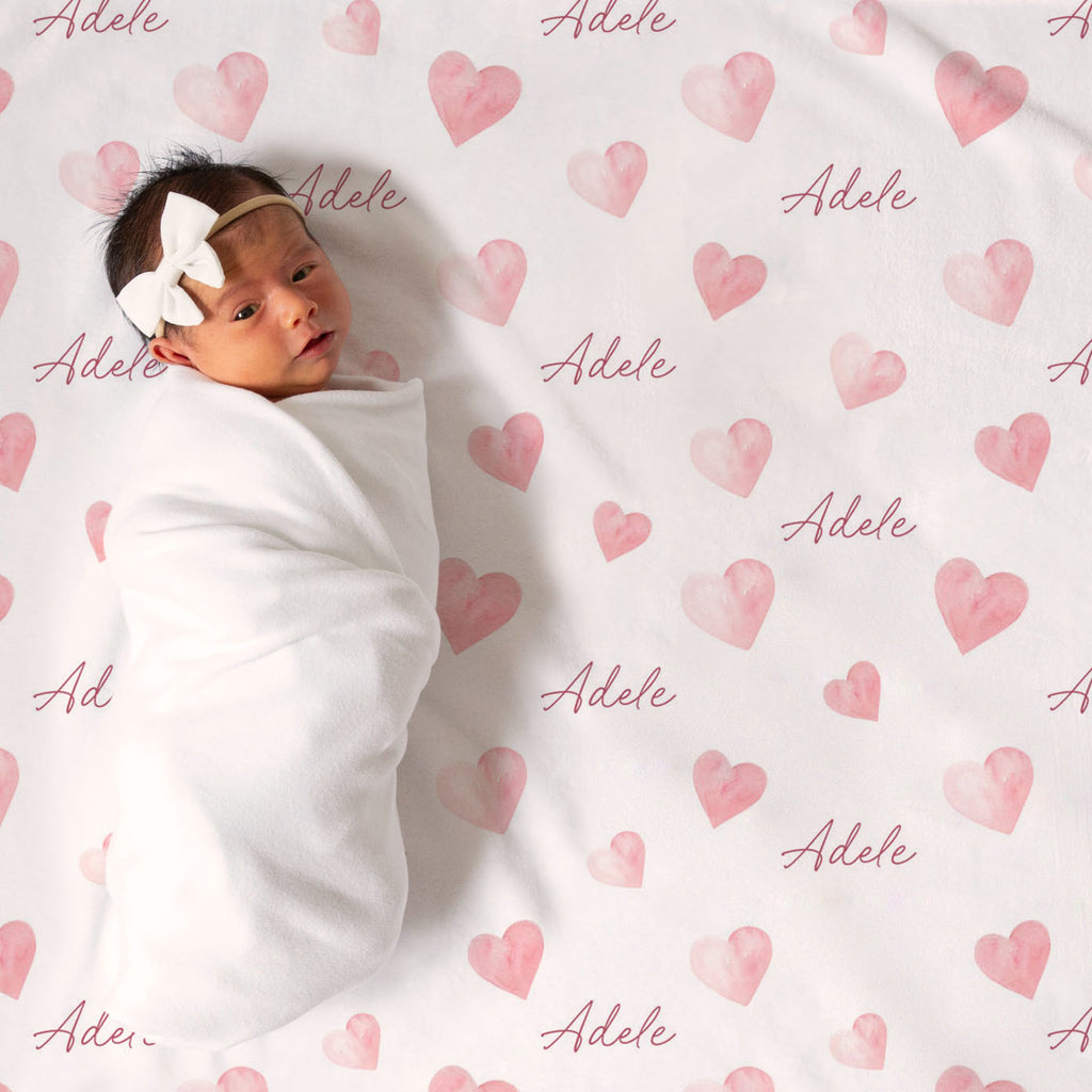 Made from a super soft fleece or minky material in a receiving blanket size of 30” x 40", this blanket is sure to become a favorite. It's perfect to wrap baby in, use in the stroller or as a one of a kind photo backdrop and makes a very popular baby shower or new baby gift.