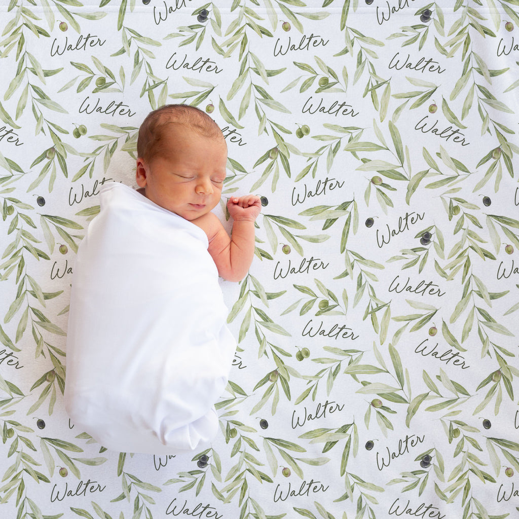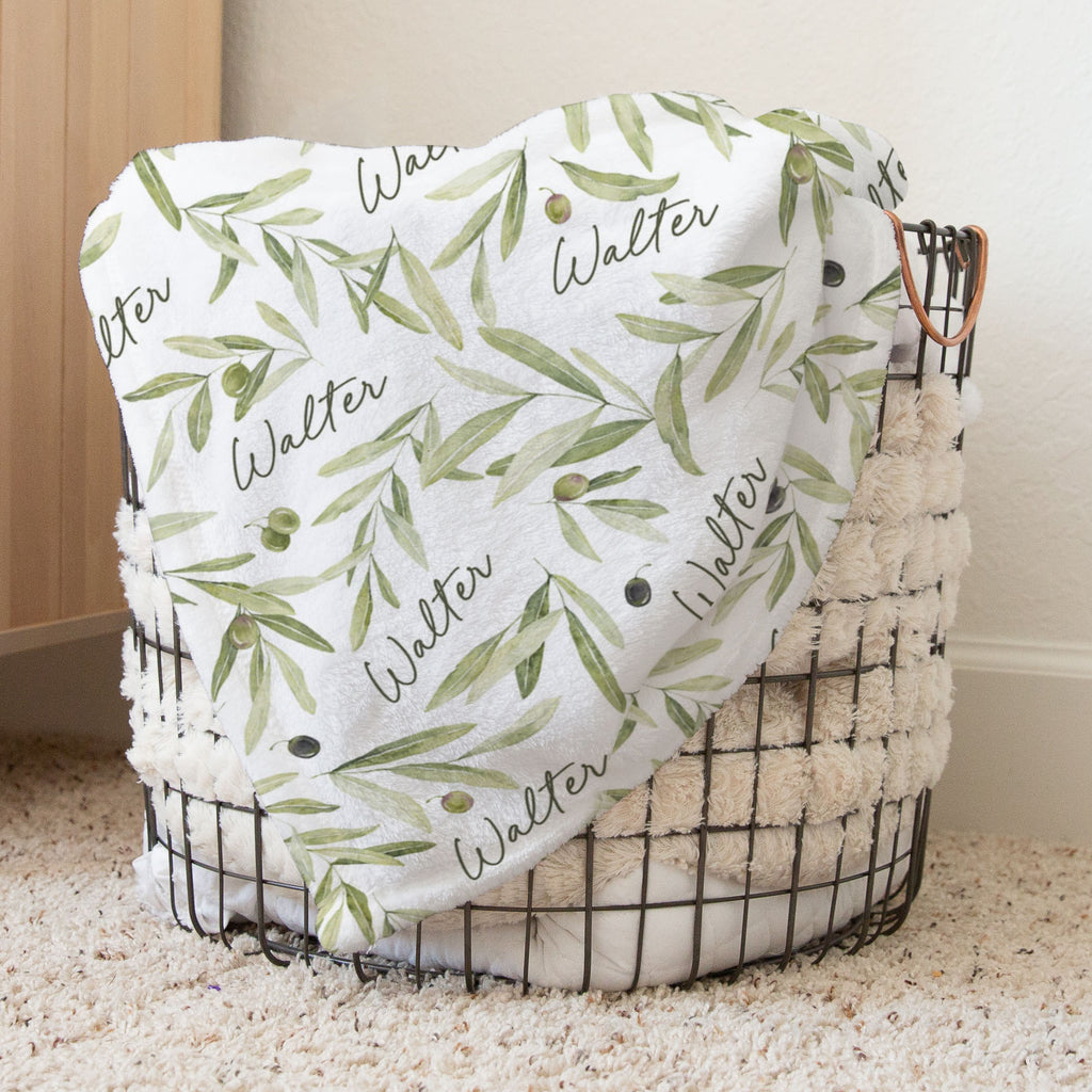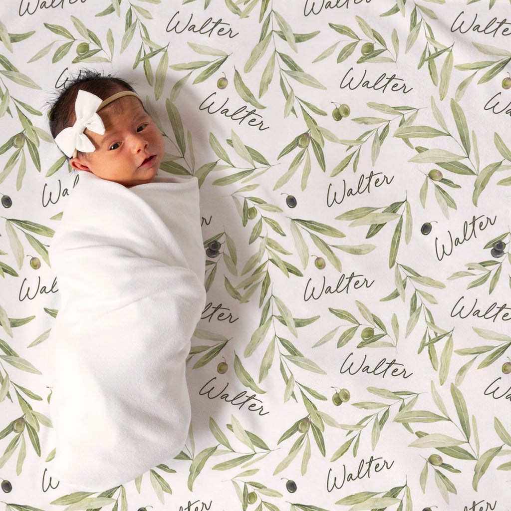 Made from a super soft fleece or minky material in a receiving blanket size of 30” x 40", this blanket is sure to become a favorite. It's perfect to wrap baby in, use in the stroller or as a one of a kind photo backdrop and makes a very popular baby shower or new baby gift.