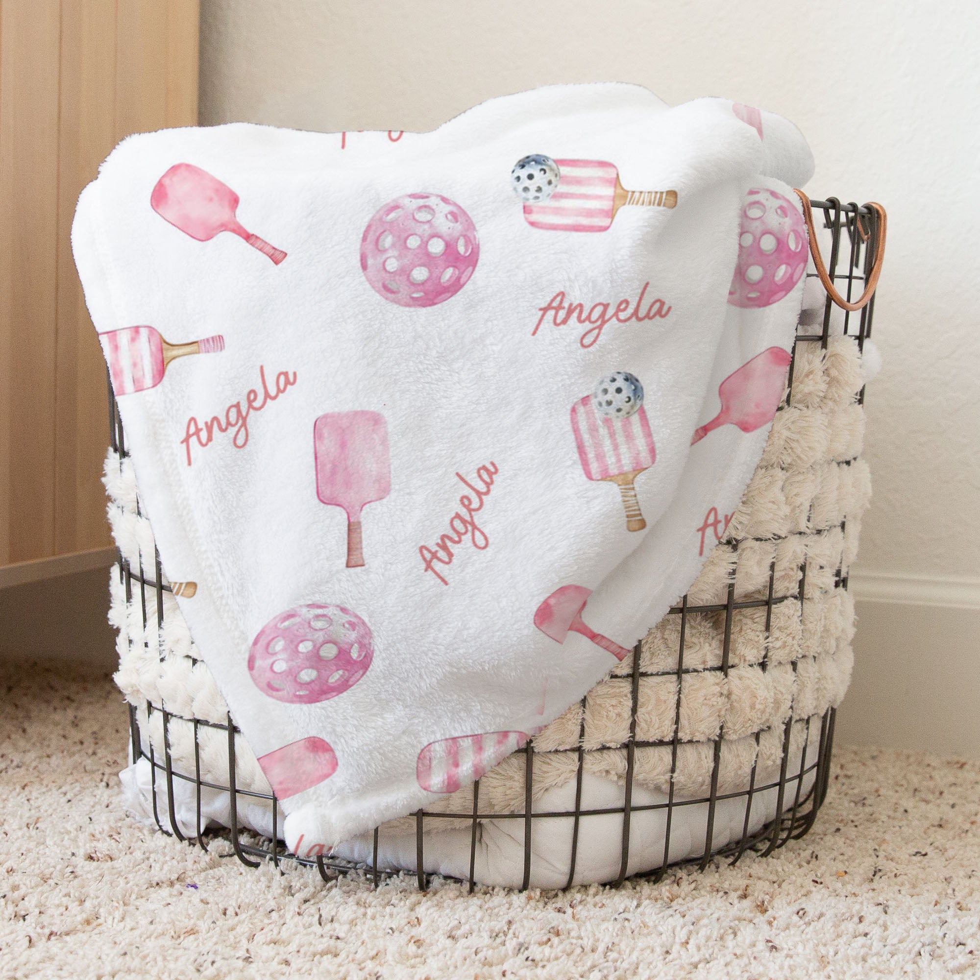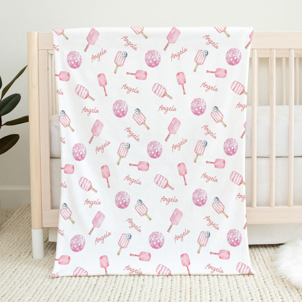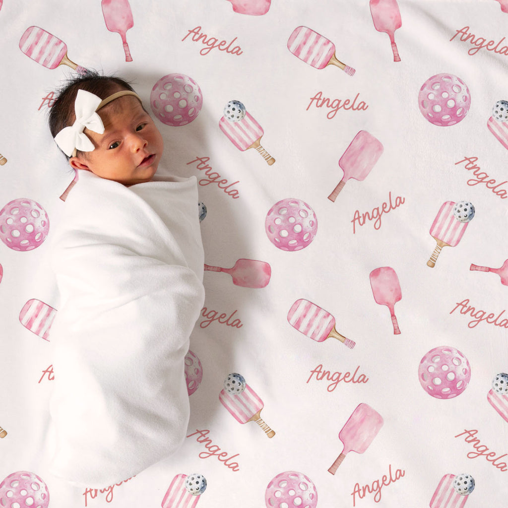 Pickleball Pink personalized baby blanket