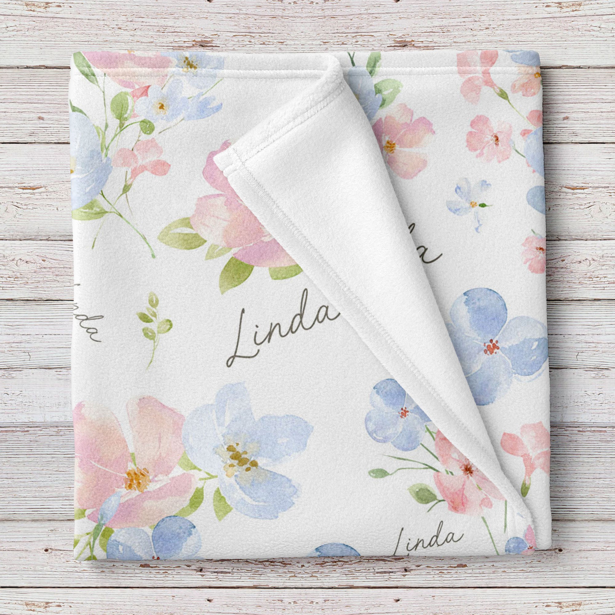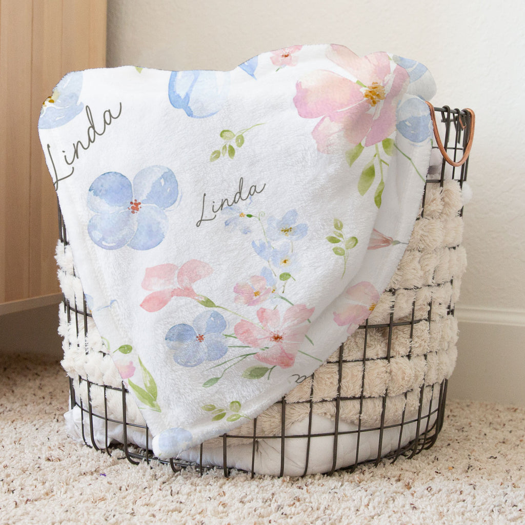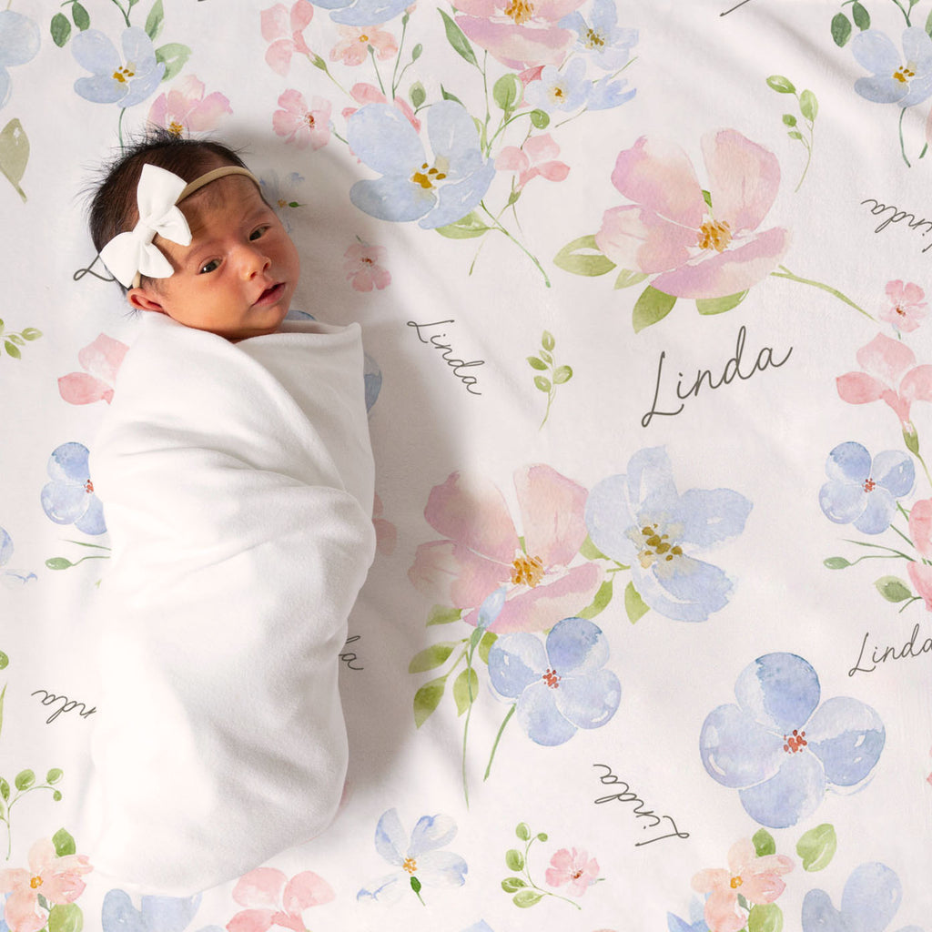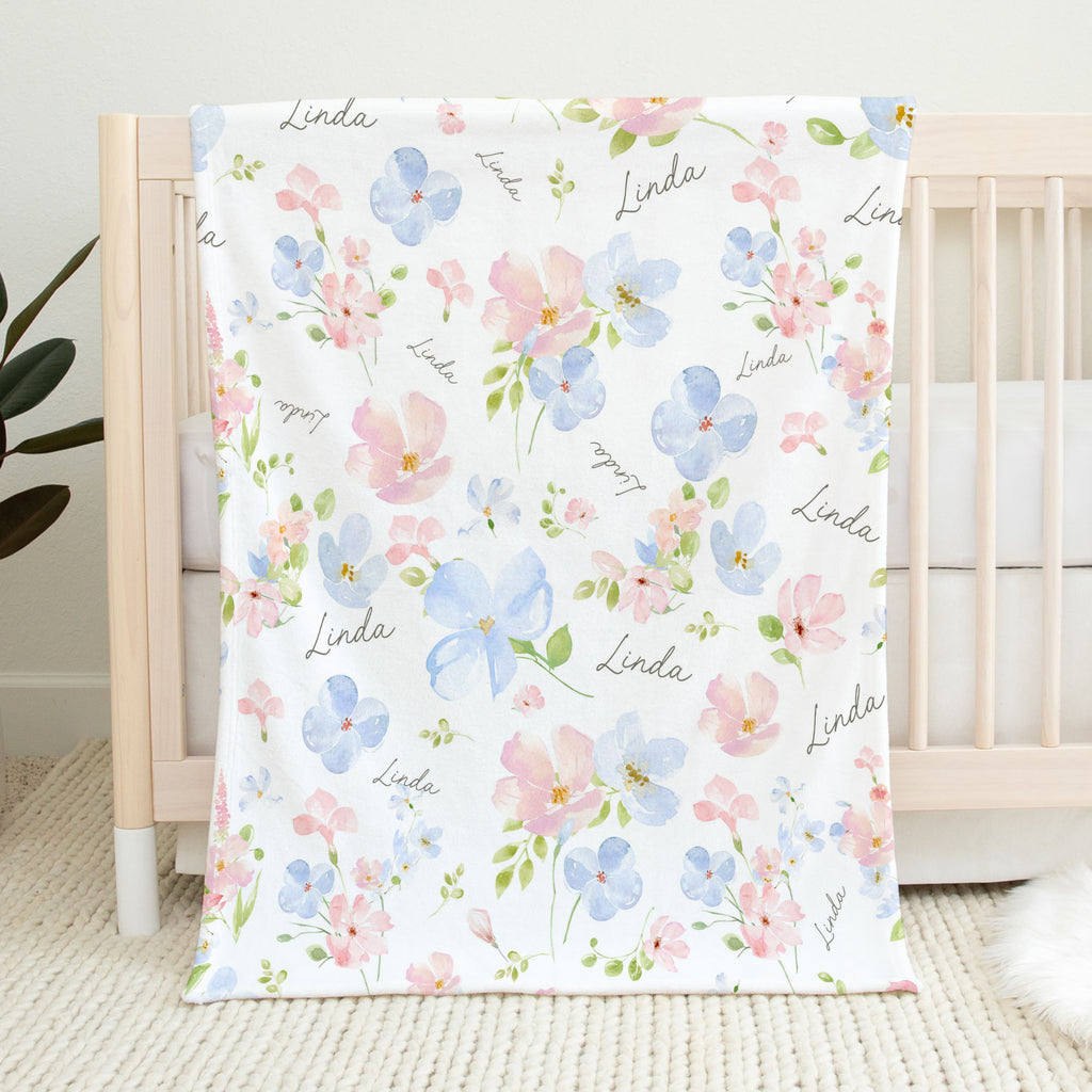 Pink and Blue Bloom Floral personalized baby blanket
