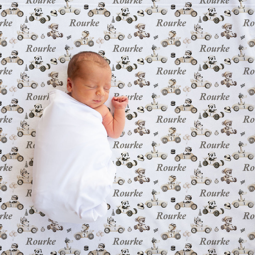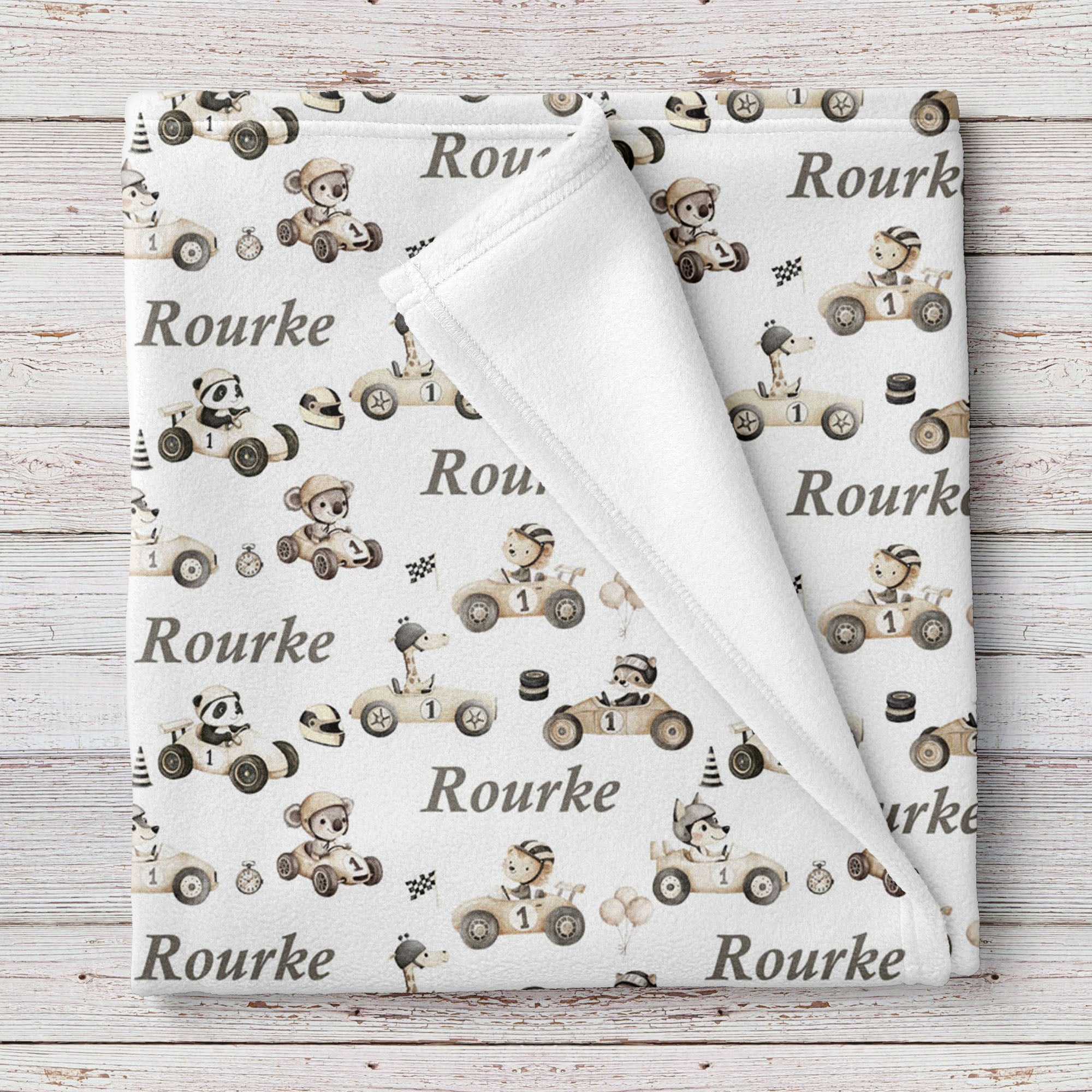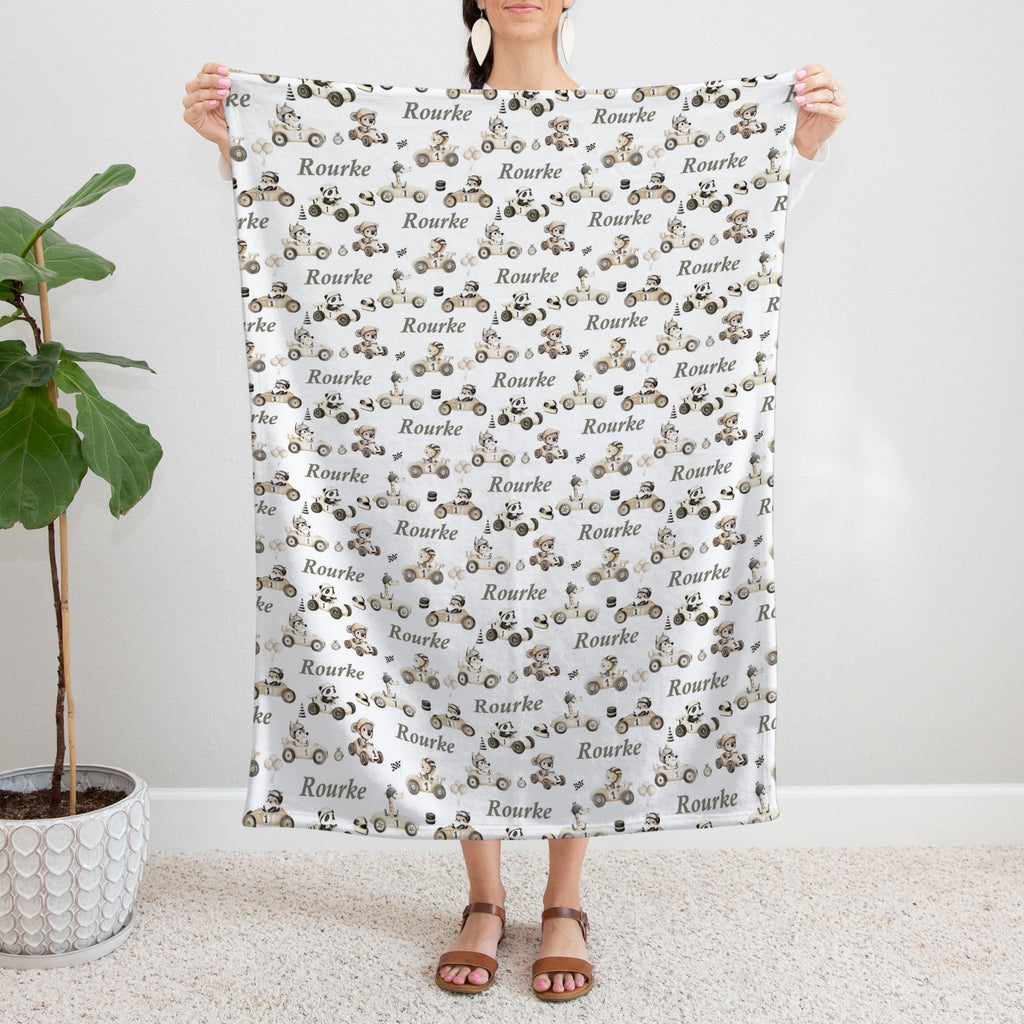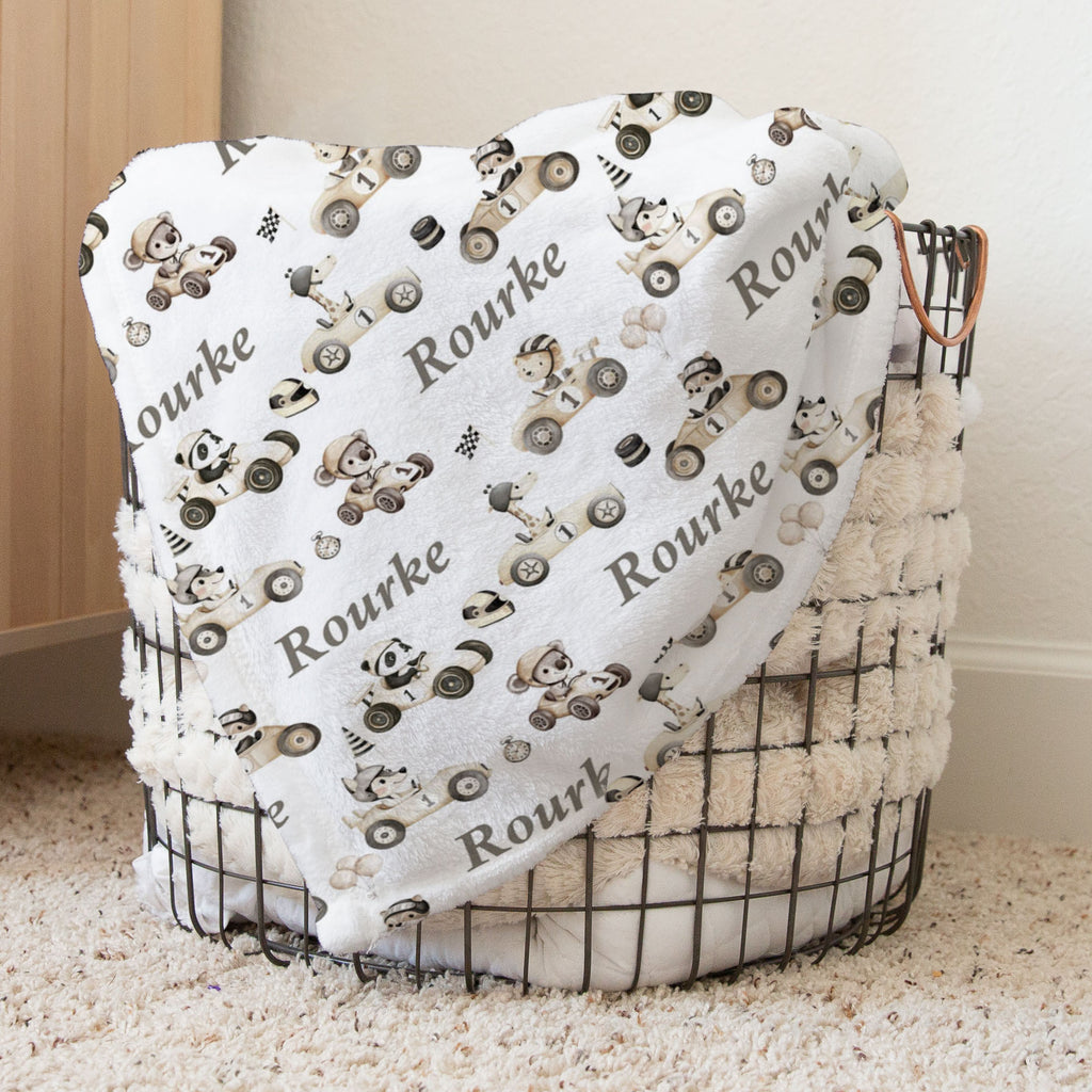 Made from a super soft fleece or minky material in a receiving blanket size of 30” x 40", this blanket is sure to become a favorite. It's perfect to wrap baby in, use in the stroller or as a one of a kind photo backdrop and makes a very popular baby shower or new baby gift.