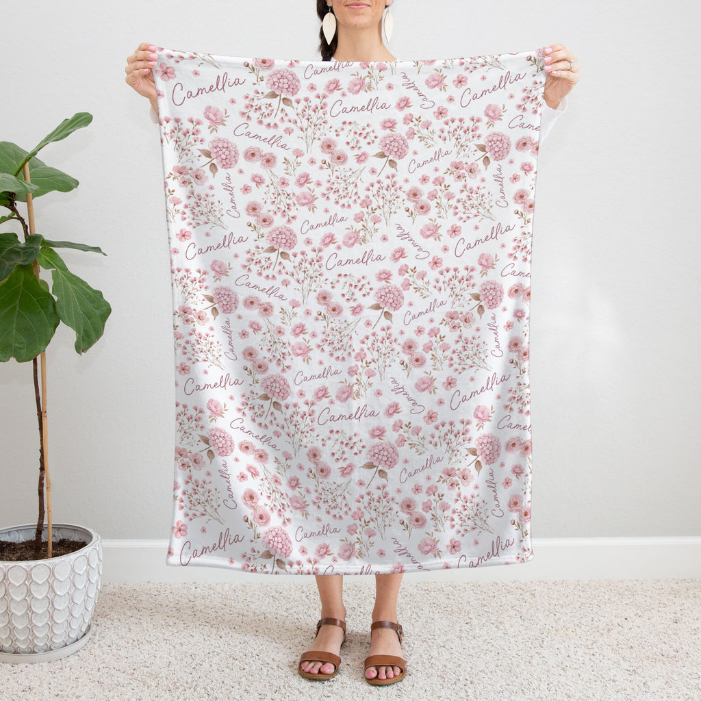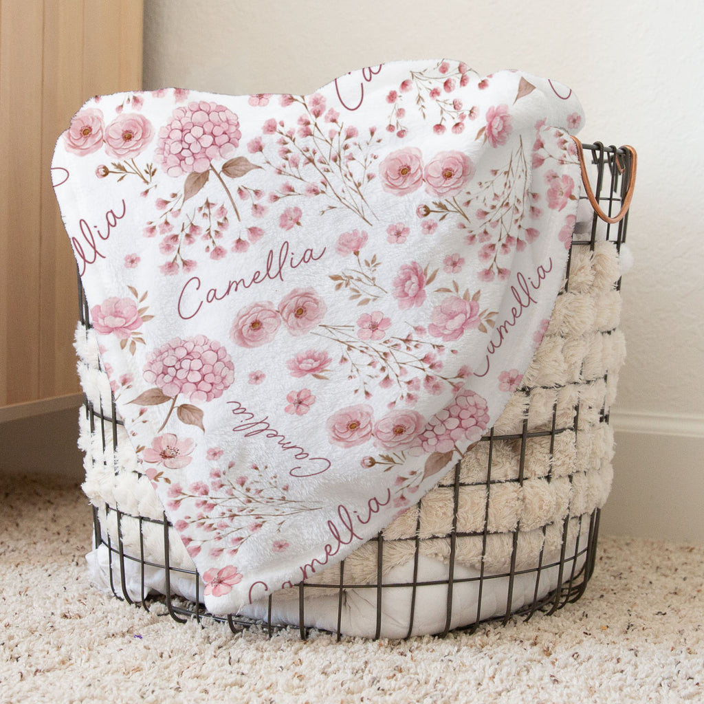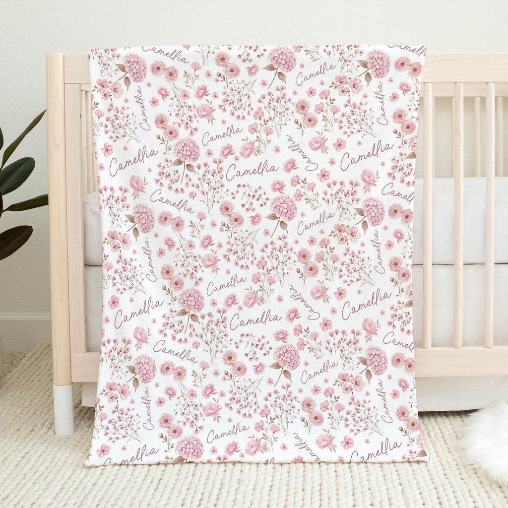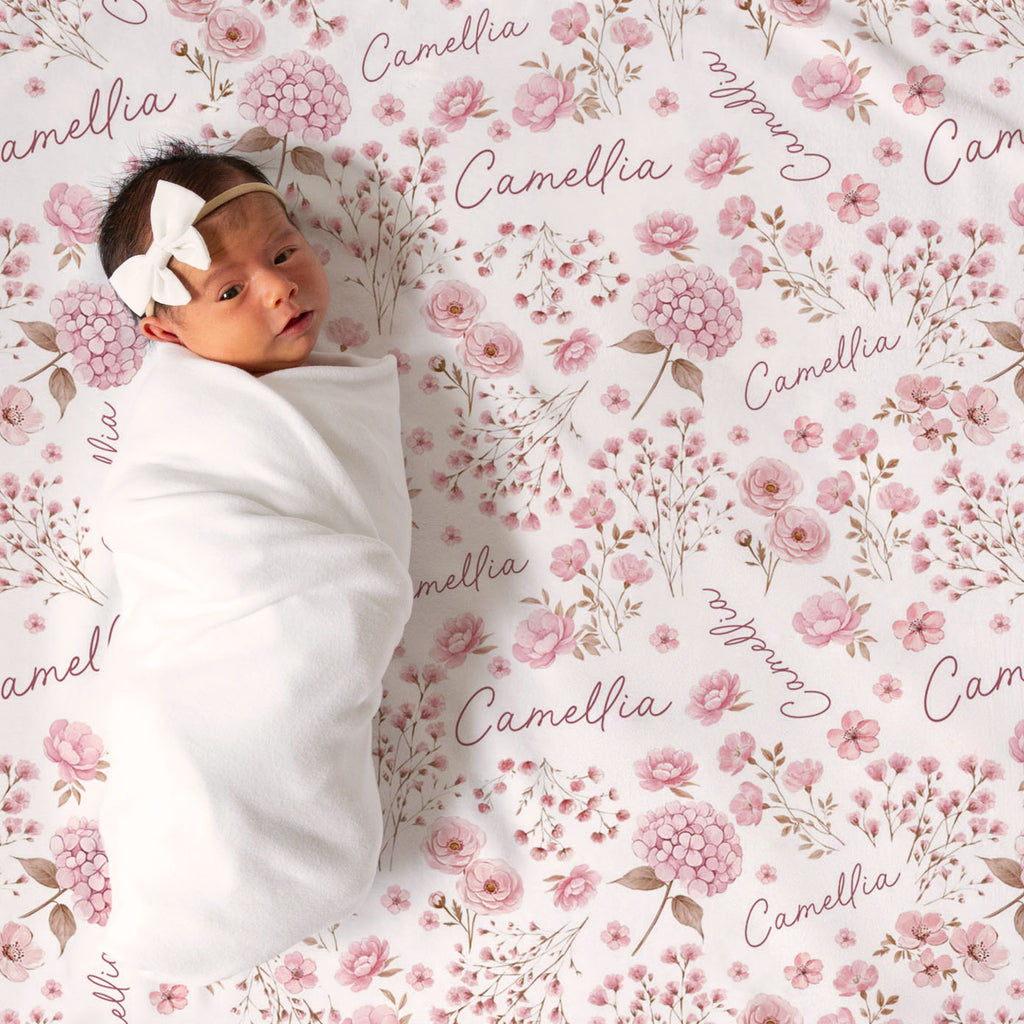Made from a super soft fleece or minky material in a receiving blanket size of 30” x 40", this blanket is sure to become a favorite. It's perfect to wrap baby in, use in the stroller or as a one of a kind photo backdrop and makes a very popular baby shower or new baby gift.