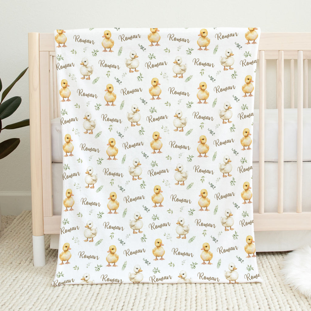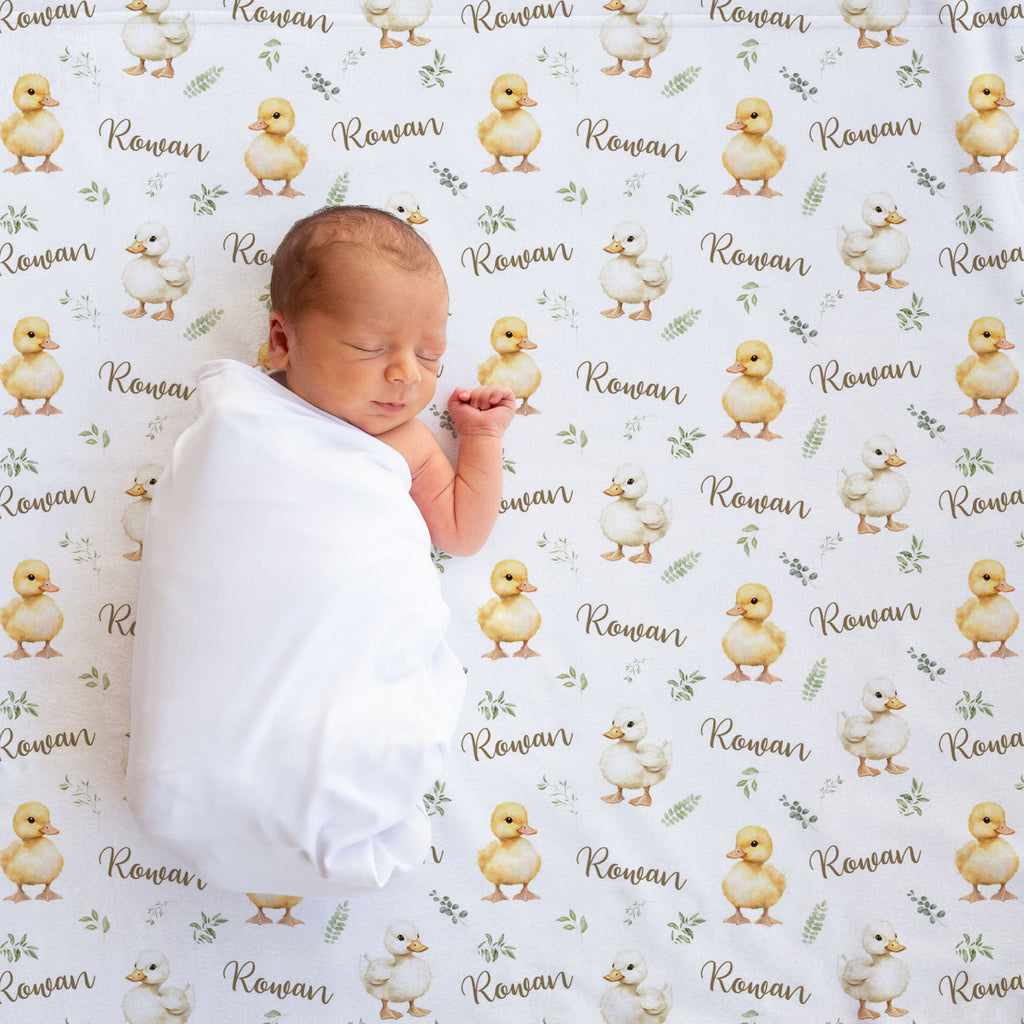 Made from a super soft fleece or minky material in a receiving blanket size of 30” x 40", this blanket is sure to become a favorite. It's perfect to wrap baby in, use in the stroller or as a one of a kind photo backdrop and makes a very popular baby shower or new baby gift.