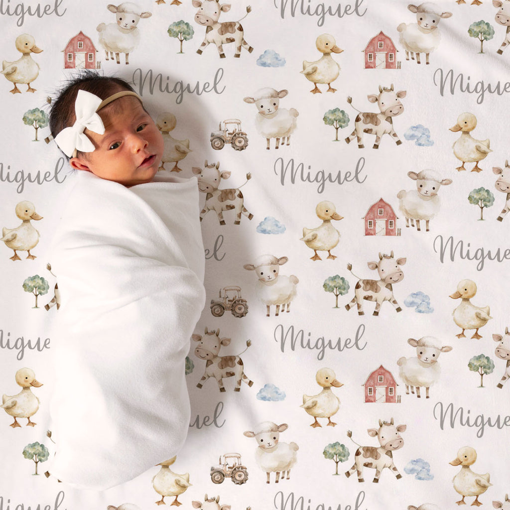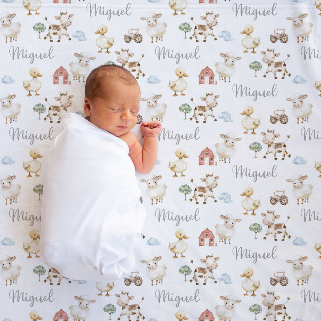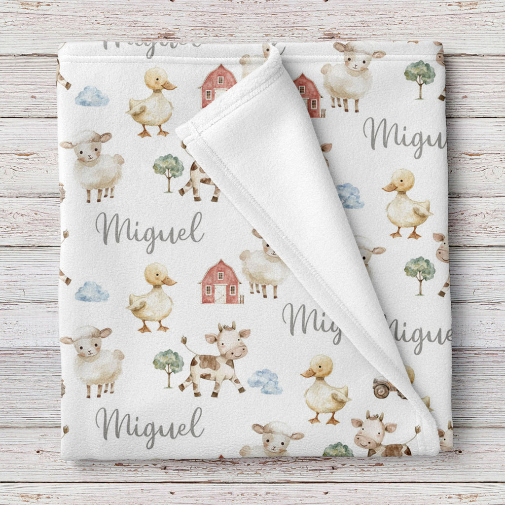 Made from a super soft fleece or minky material in a receiving blanket size of 30” x 40", this blanket is sure to become a favorite. It's perfect to wrap baby in, use in the stroller or as a one of a kind photo backdrop and makes a very popular baby shower or new baby gift.