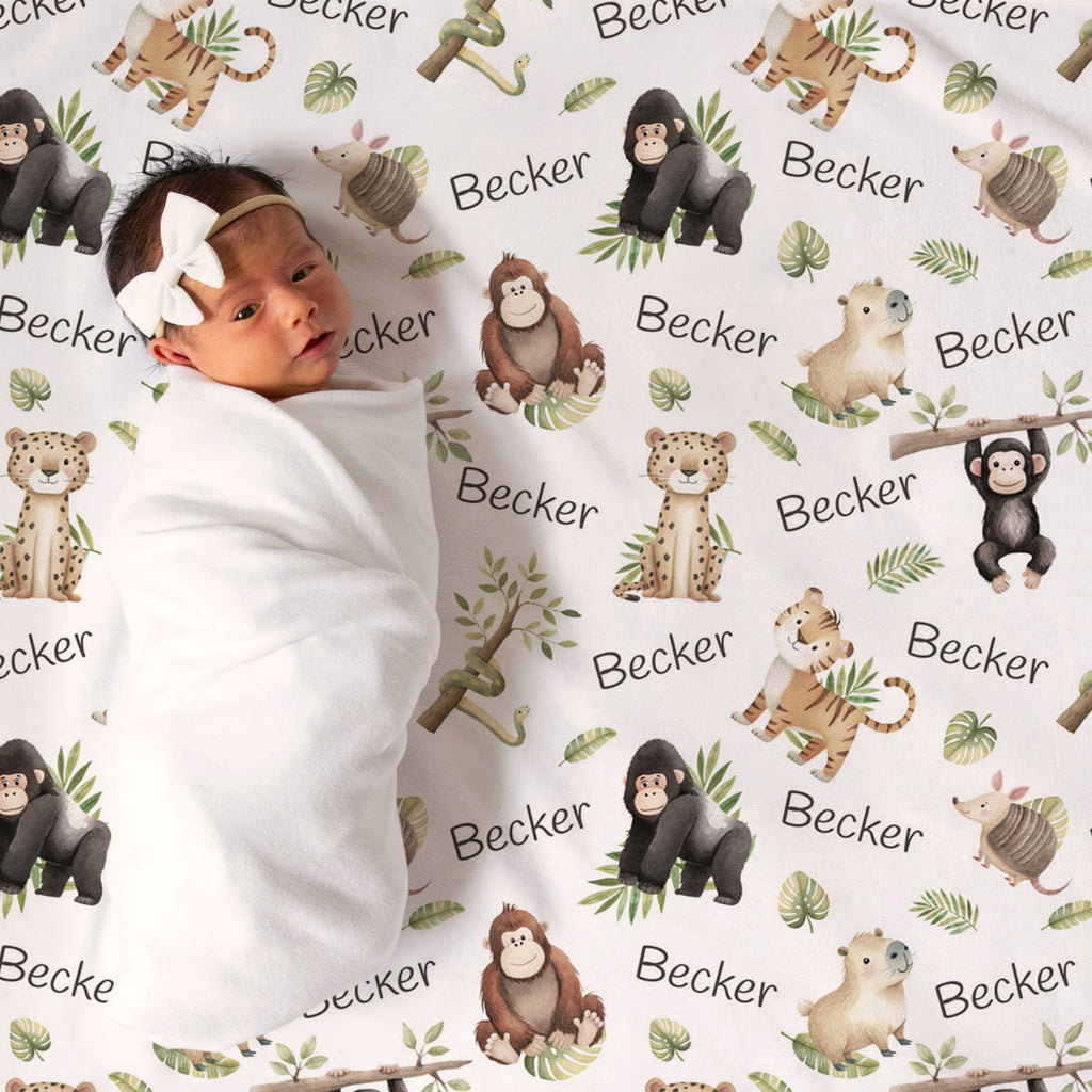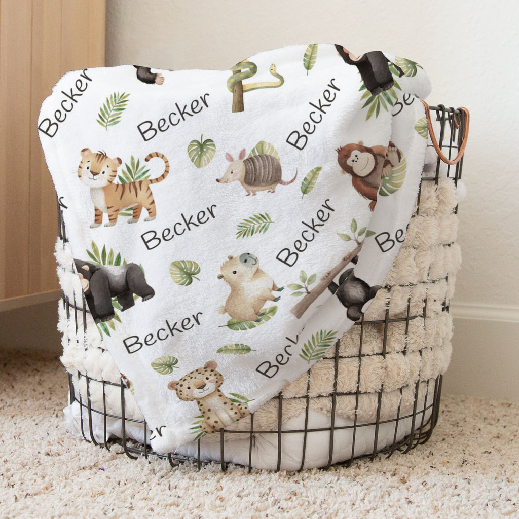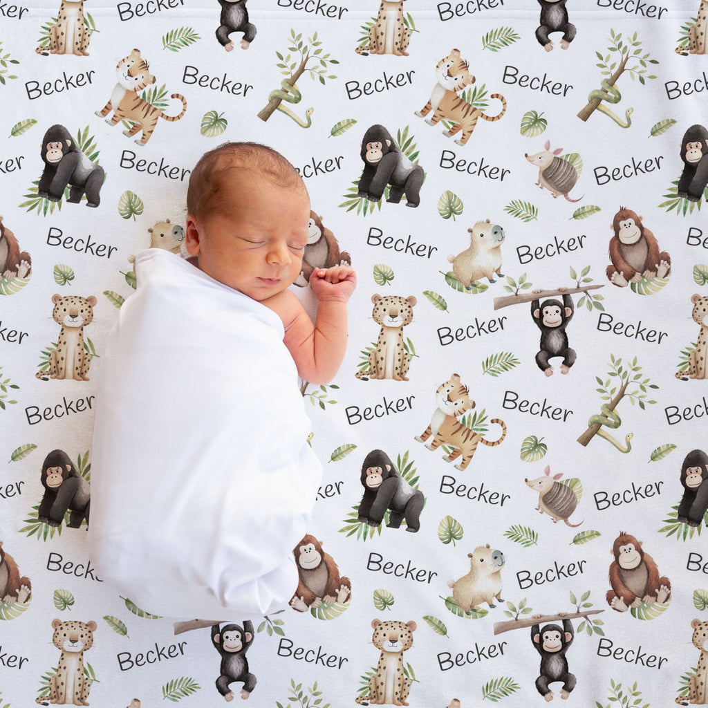 Made from a super soft fleece or minky material in a receiving blanket size of 30” x 40", this blanket is sure to become a favorite. It's perfect to wrap baby in, use in the stroller or as a one of a kind photo backdrop and makes a very popular baby shower or new baby gift.