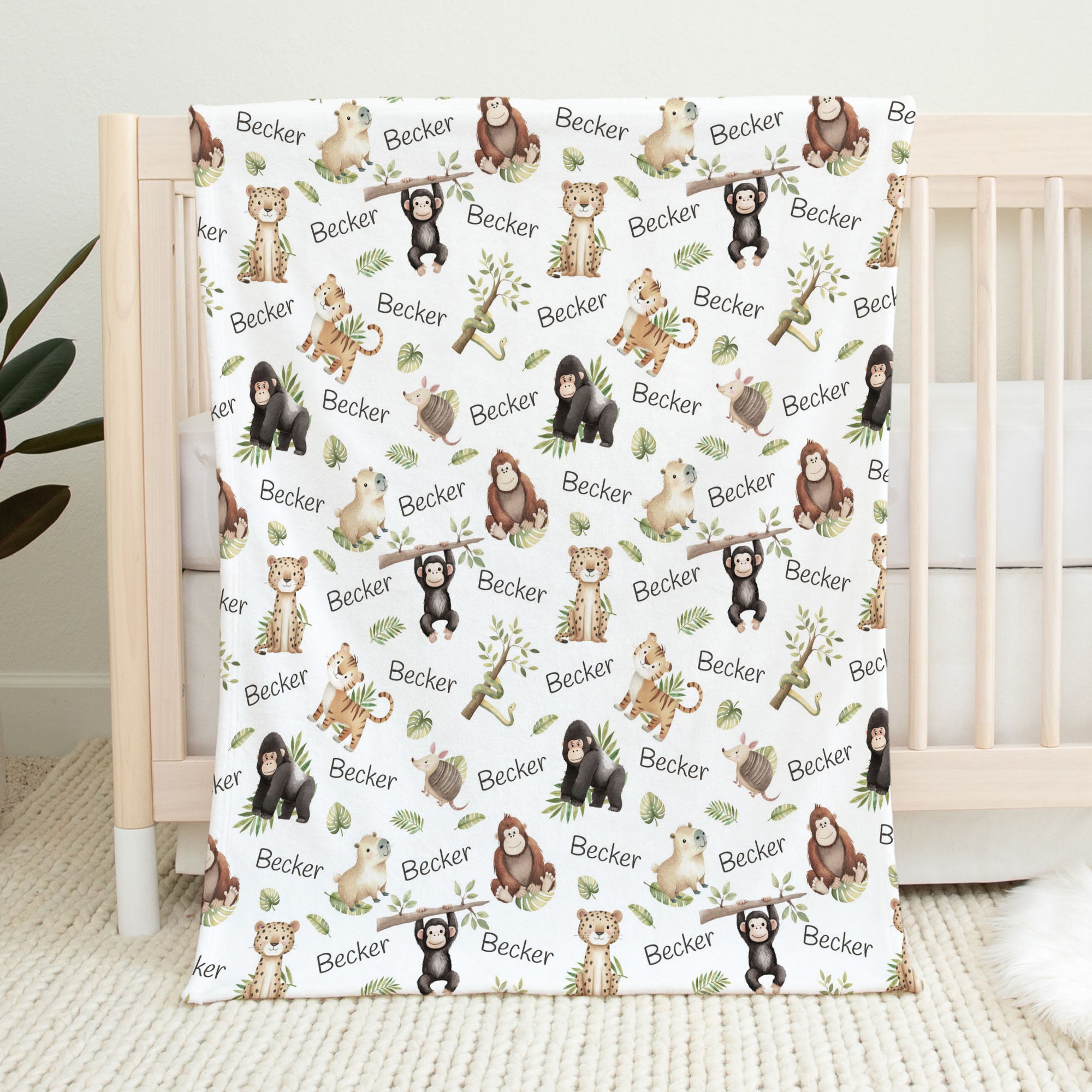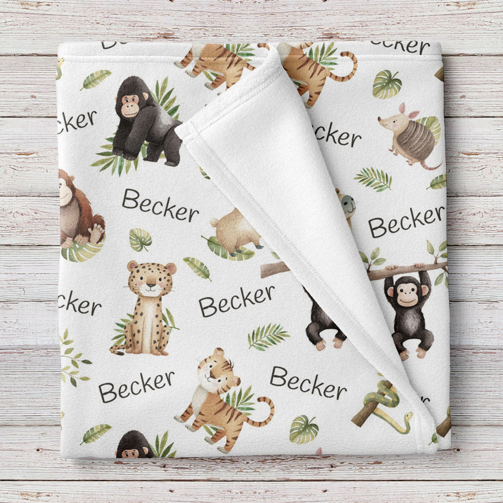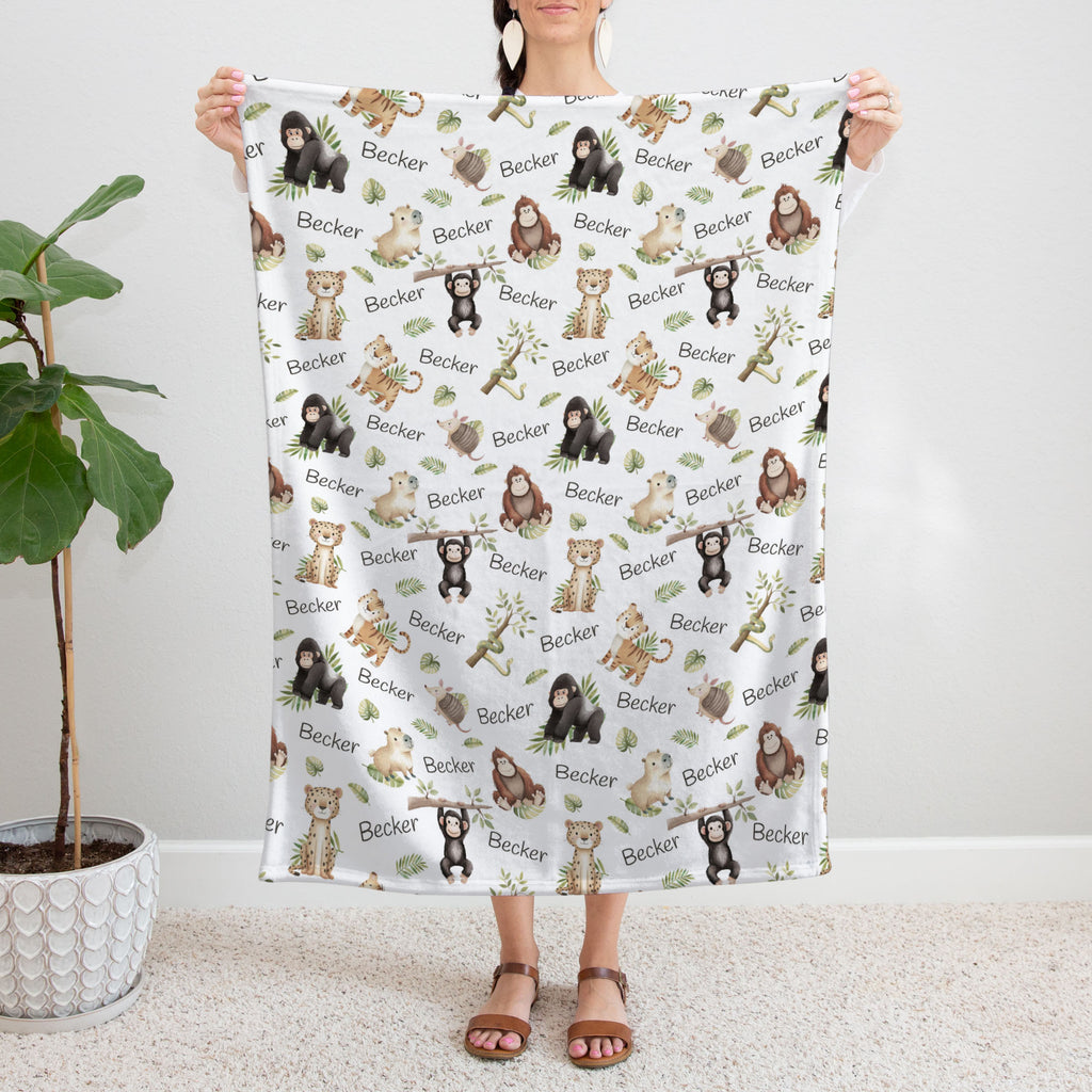 Made from a super soft fleece or minky material in a receiving blanket size of 30” x 40", this blanket is sure to become a favorite. It's perfect to wrap baby in, use in the stroller or as a one of a kind photo backdrop and makes a very popular baby shower or new baby gift.