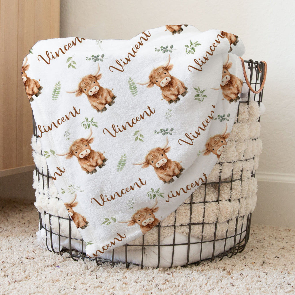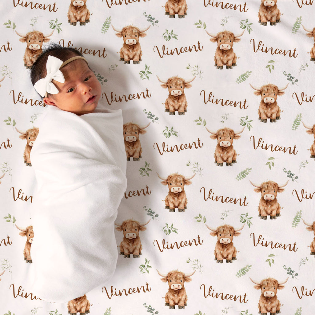 Made from a super soft fleece or minky material in a receiving blanket size of 30” x 40", this blanket is sure to become a favorite. It's perfect to wrap baby in, use in the stroller or as a one of a kind photo backdrop and makes a very popular baby shower or new baby gift.