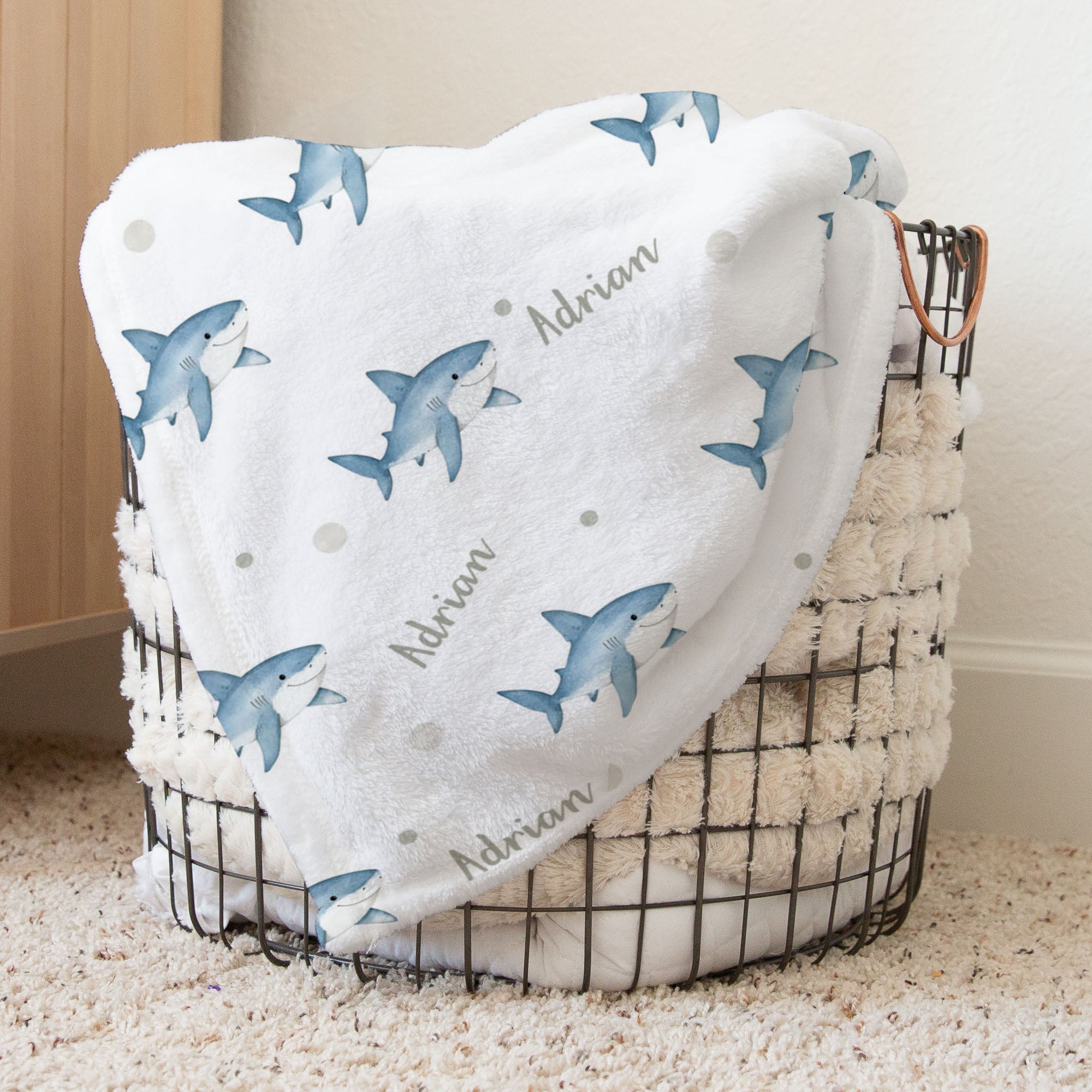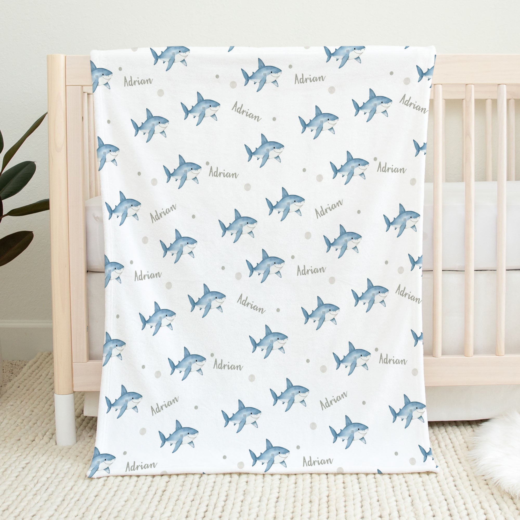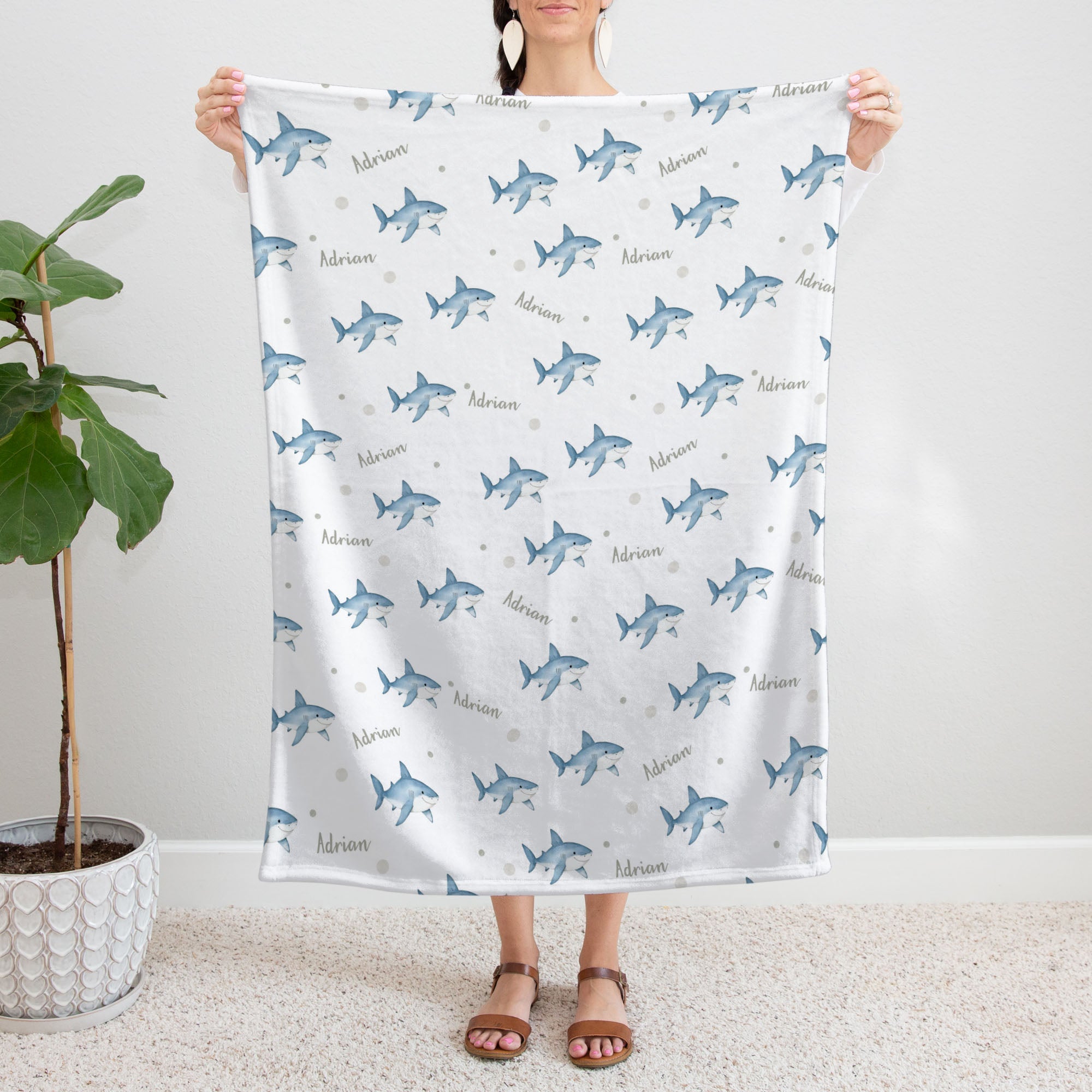 Ocean sharks personalized baby blanket
