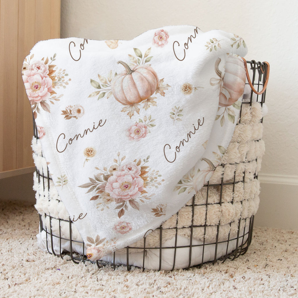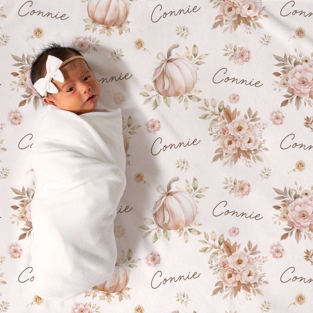 Made from a super soft fleece or minky material in a receiving blanket size of 30” x 40", this blanket is sure to become a favorite. It's perfect to wrap baby in, use in the stroller or as a one of a kind photo backdrop and makes a very popular baby shower or new baby gift.