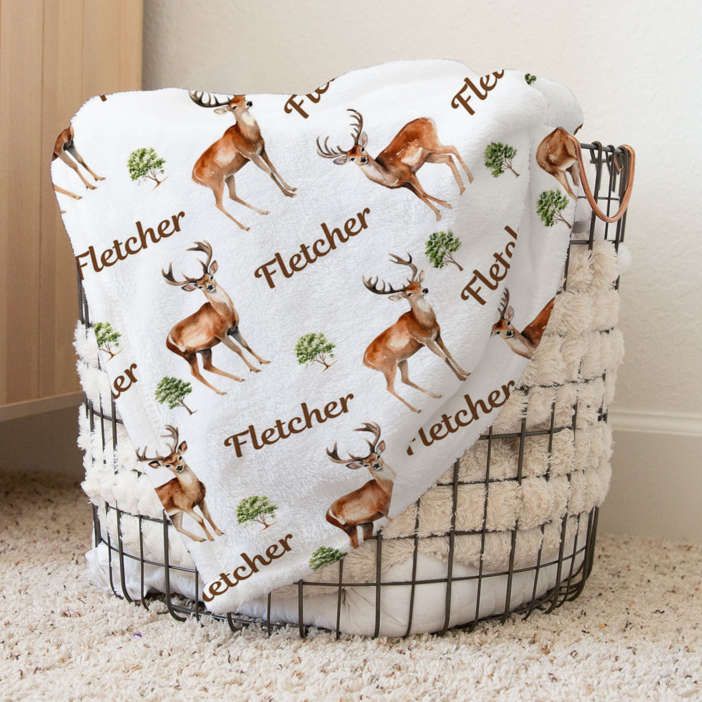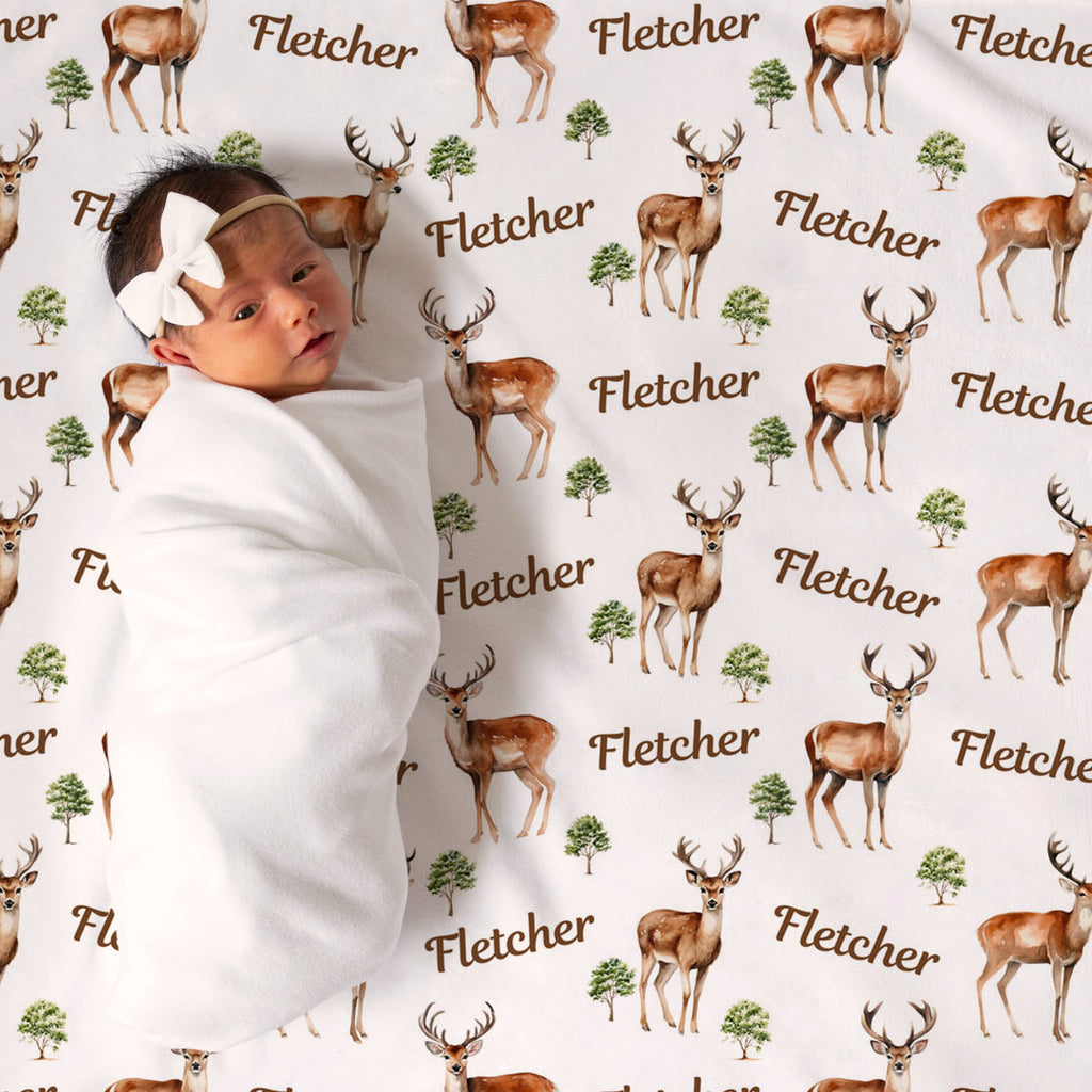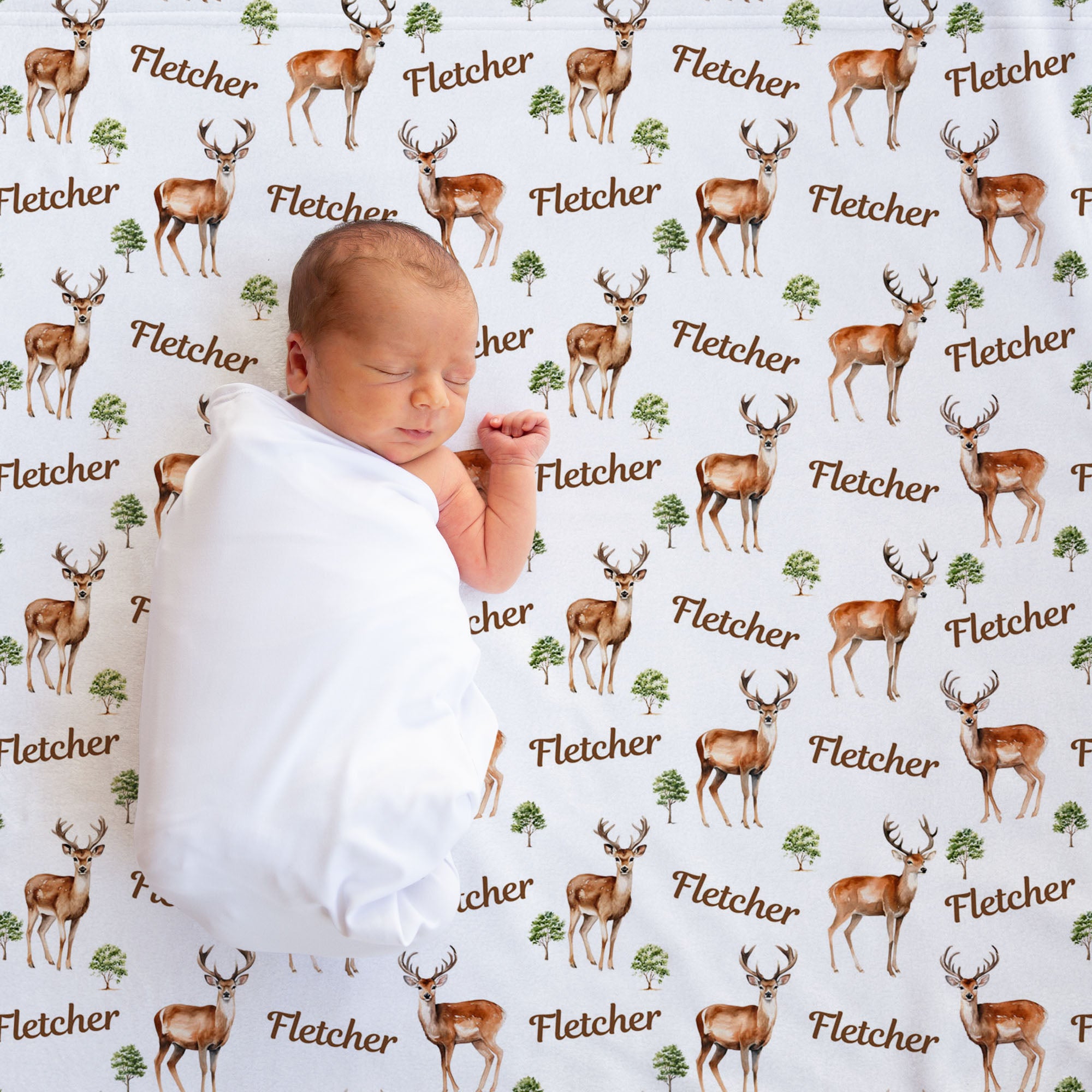 Made from a super soft fleece or minky material in a receiving blanket size of 30” x 40", this blanket is sure to become a favorite. It's perfect to wrap baby in, use in the stroller or as a one of a kind photo backdrop and makes a very popular baby shower or new baby gift.