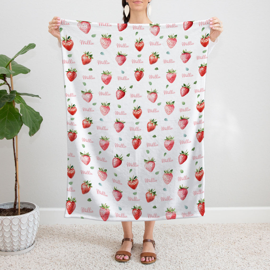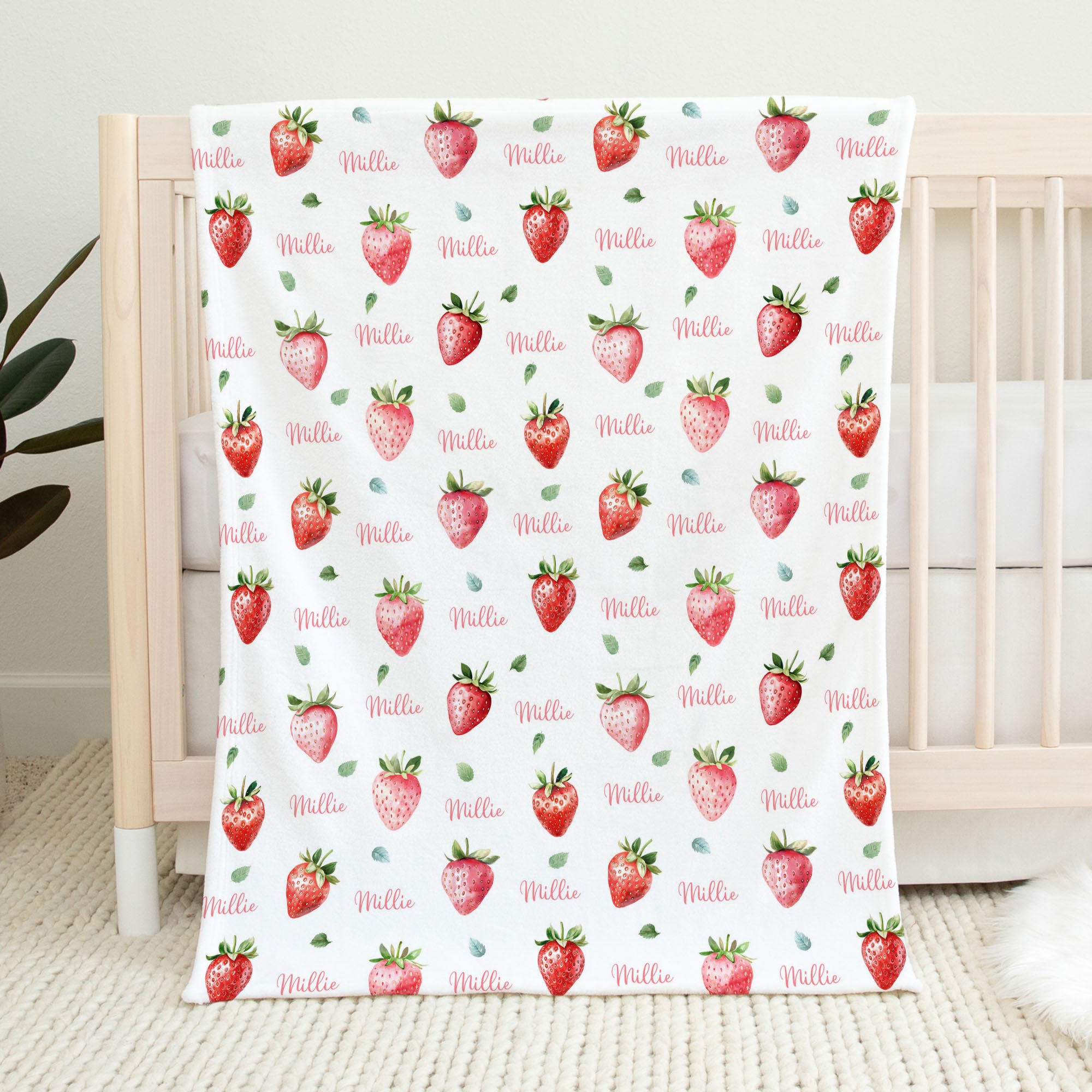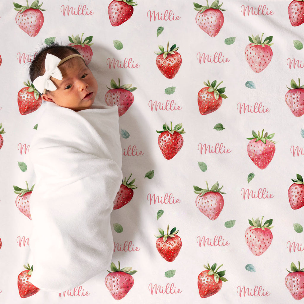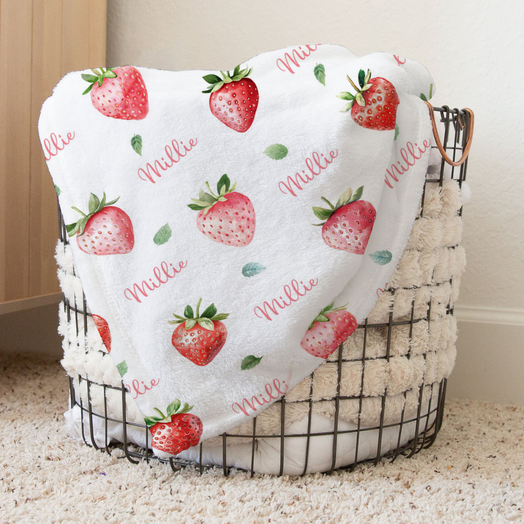 Made from a super soft fleece or minky material in a receiving blanket size of 30” x 40", this blanket is sure to become a favorite. It's perfect to wrap baby in, use in the stroller or as a one of a kind photo backdrop and makes a very popular baby shower or new baby gift.