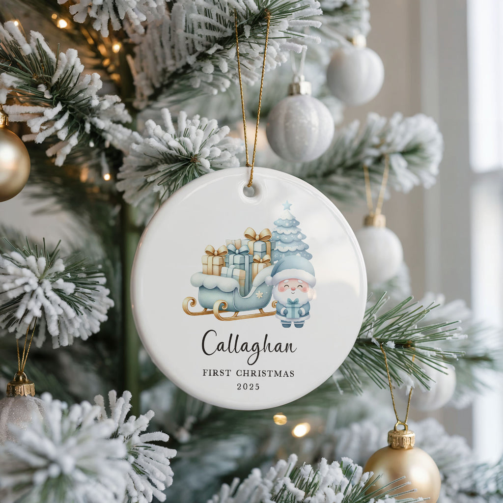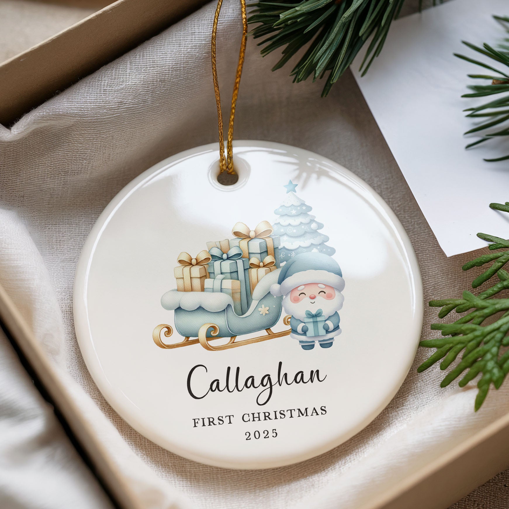 Baby's First Christmas Ornament, Blue Santa Sleigh
