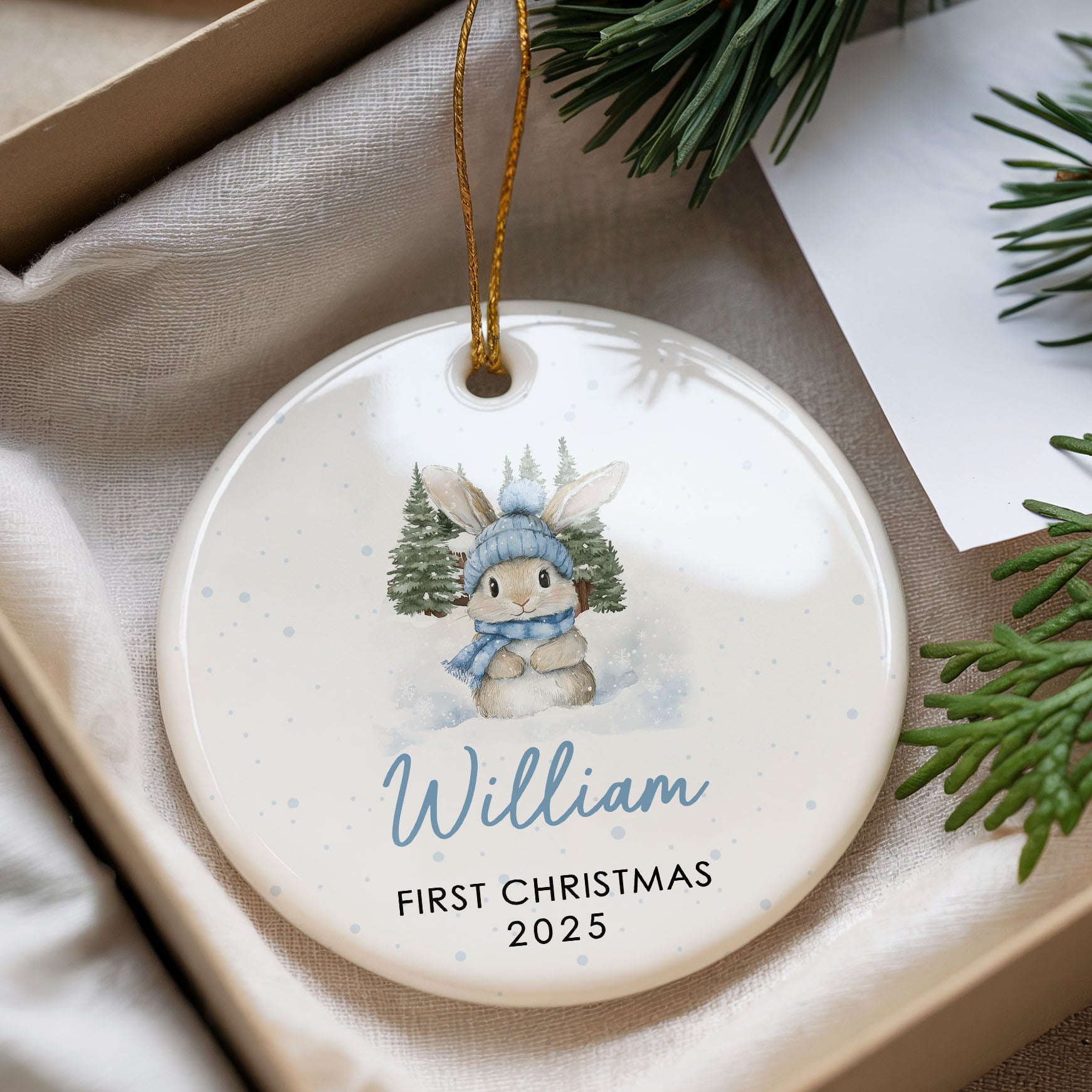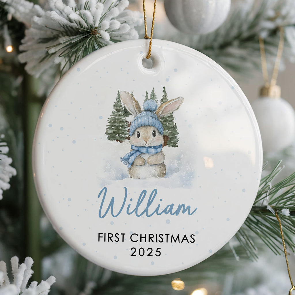 Baby's First Christmas Ornament, Nostalgia Bunny Beanie
