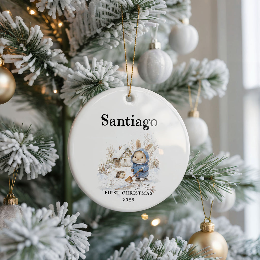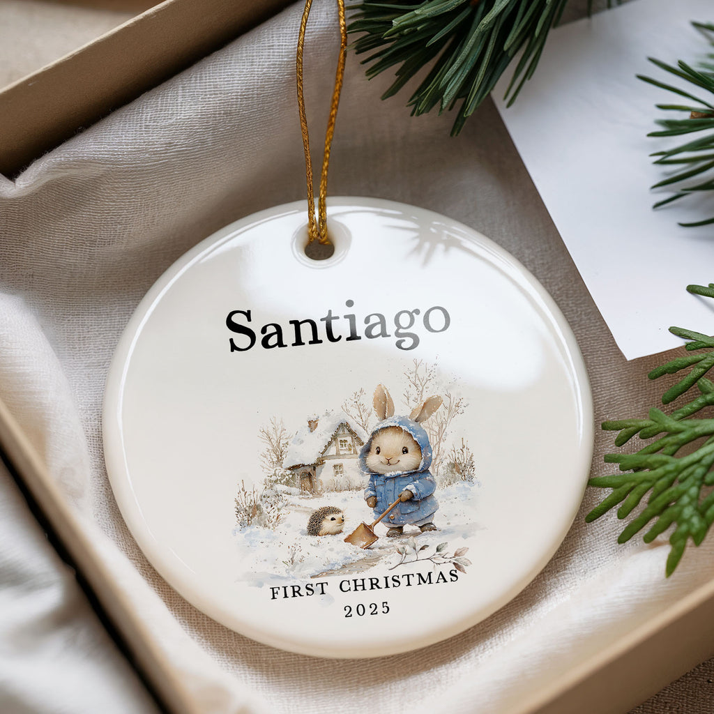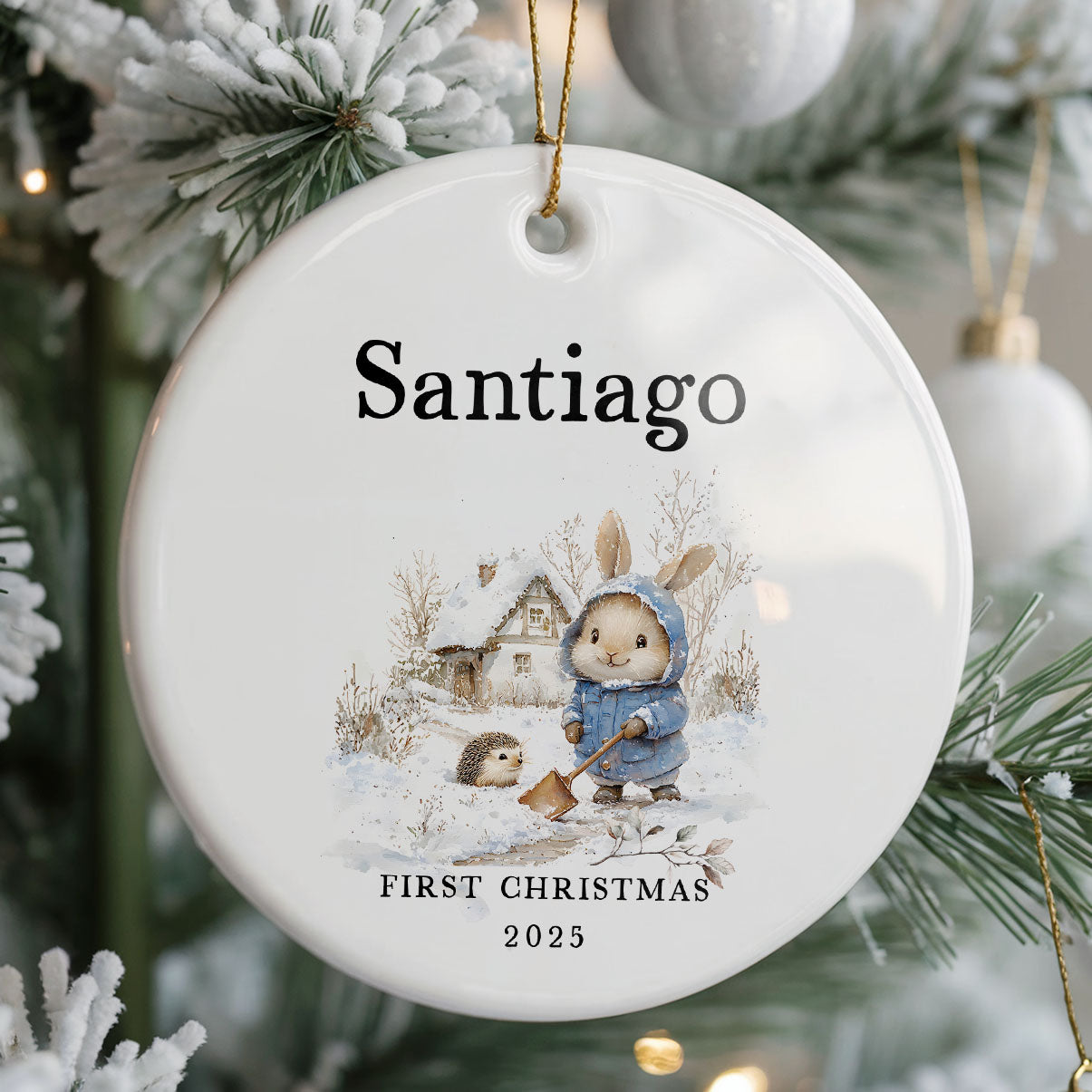 Baby's First Christmas Ornament, Nostalgia Bunny Village