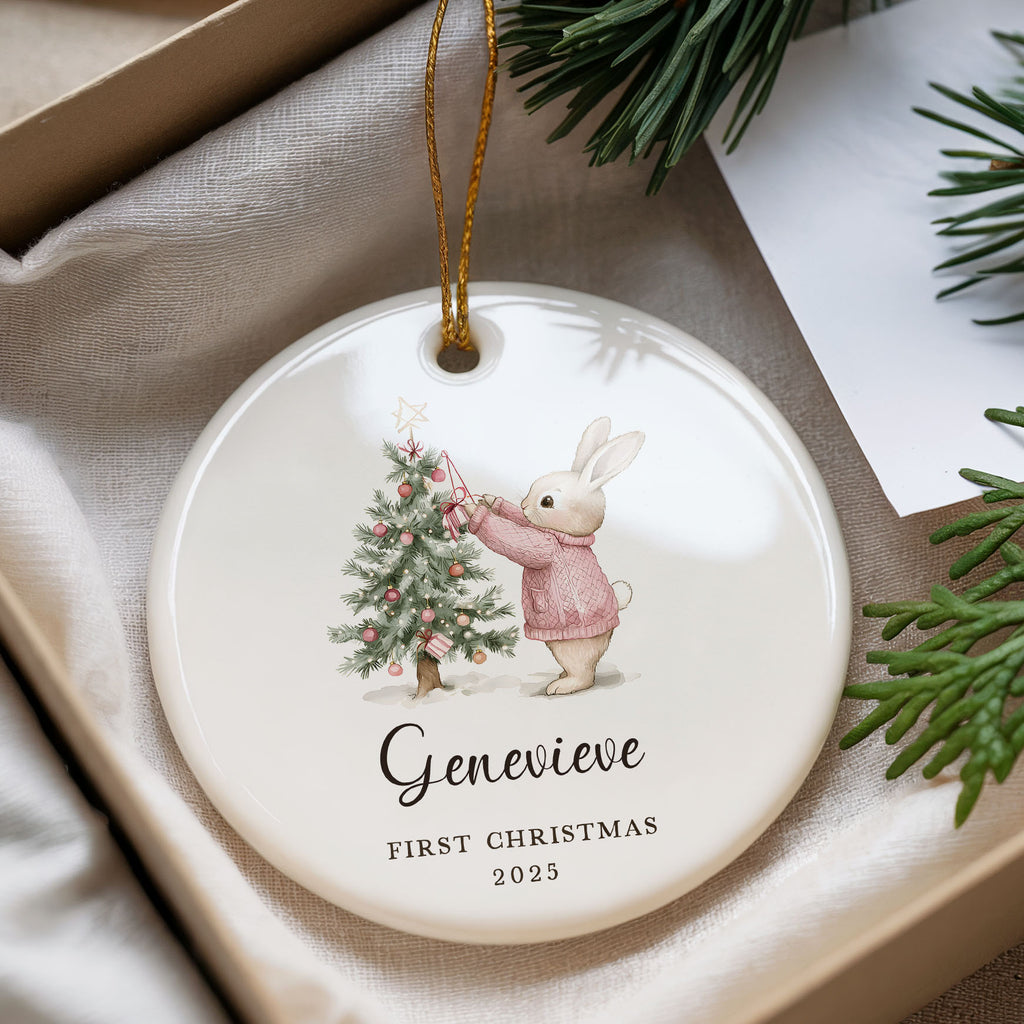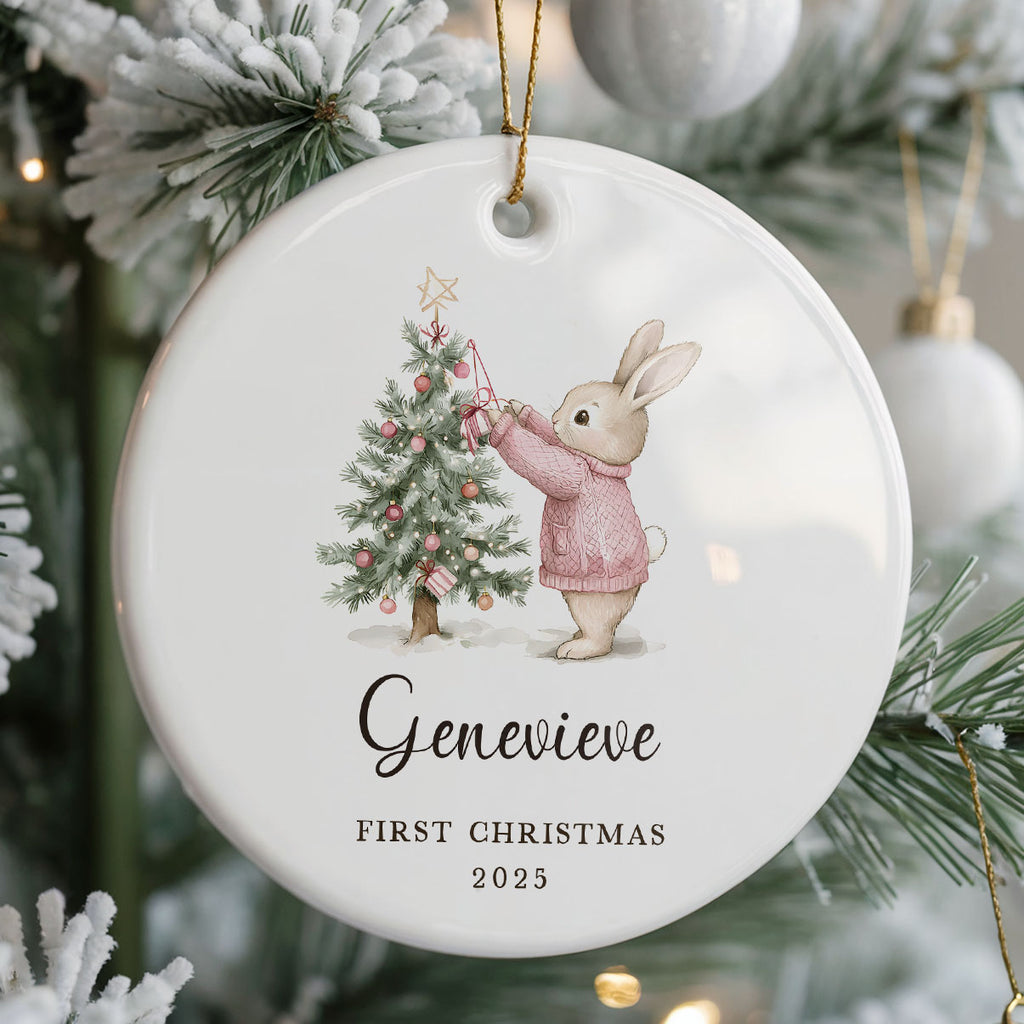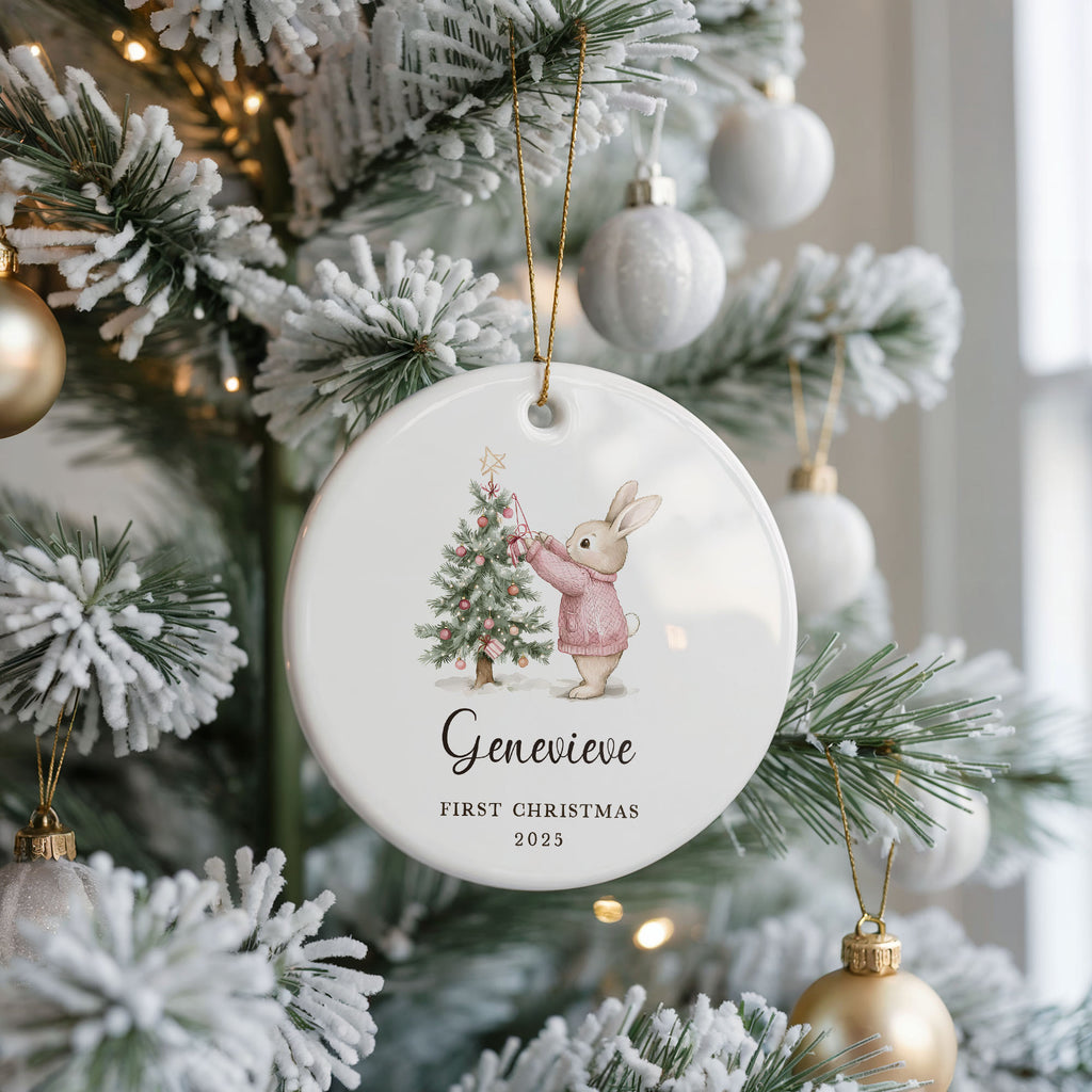 Baby's First Christmas Ornament, Nostalgia Pink Bunny