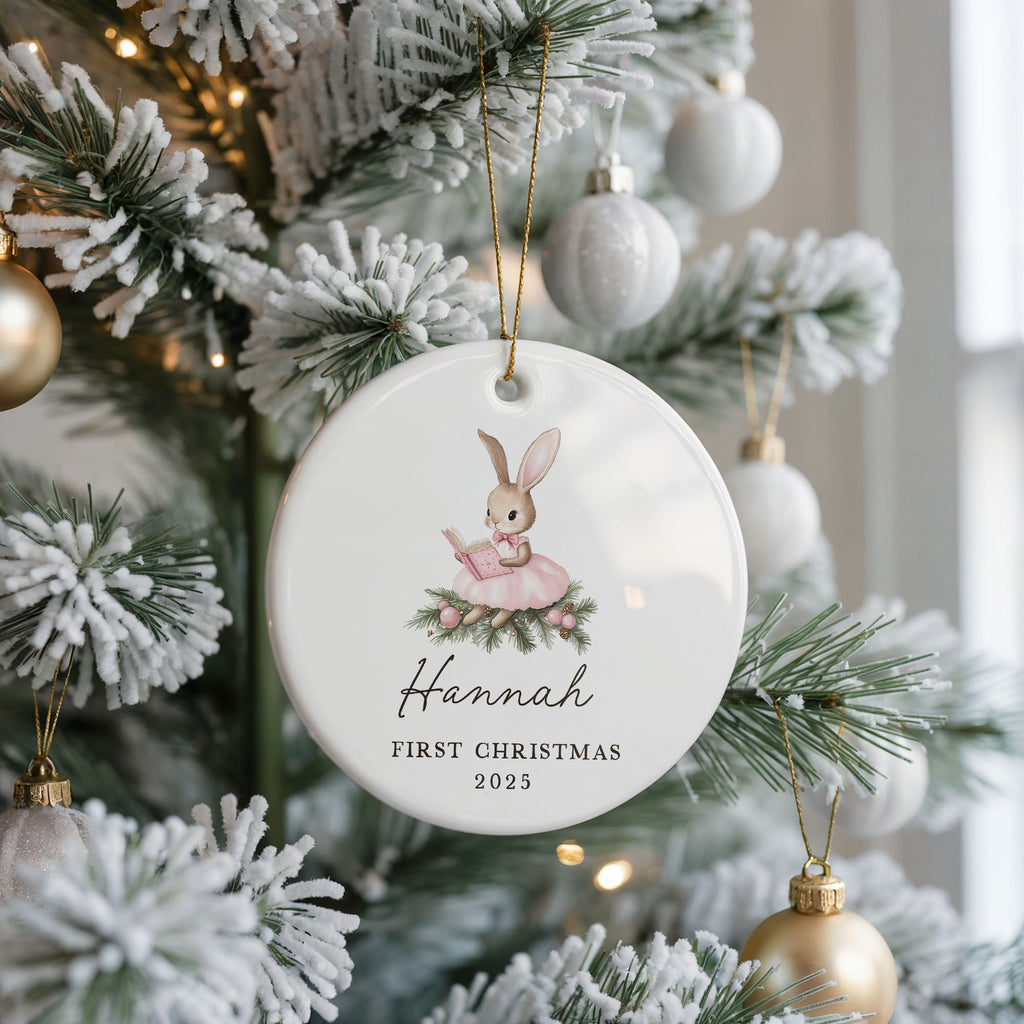 Baby's First Christmas Ornament, Pink Ballerina Bunny
