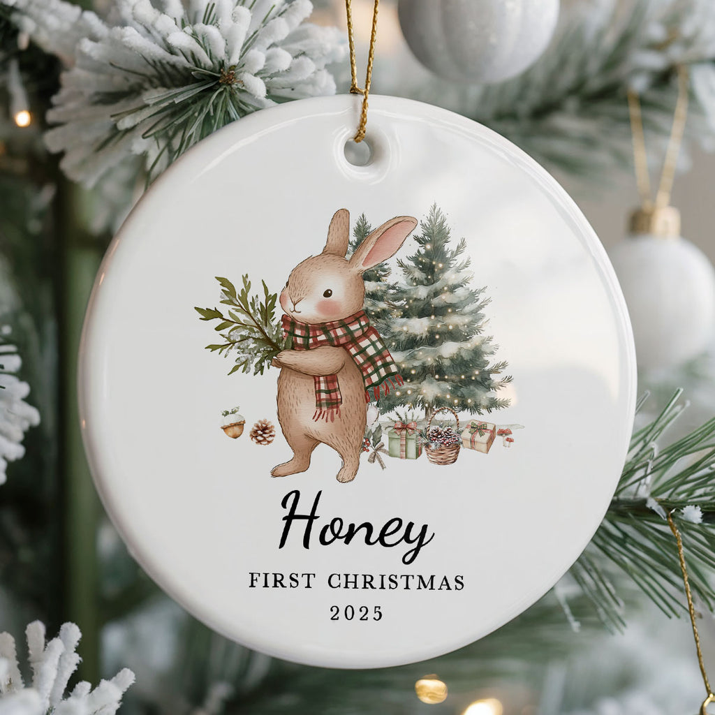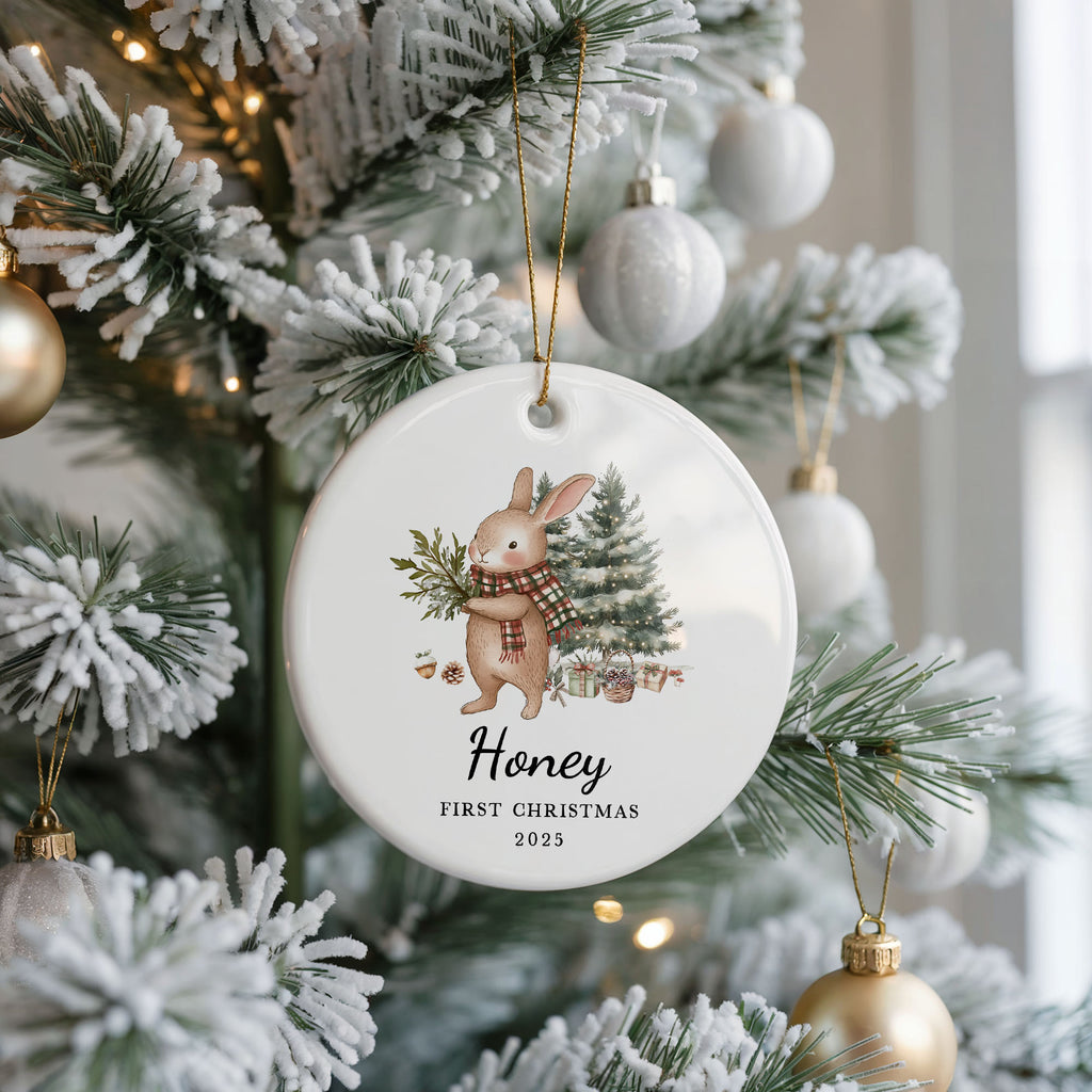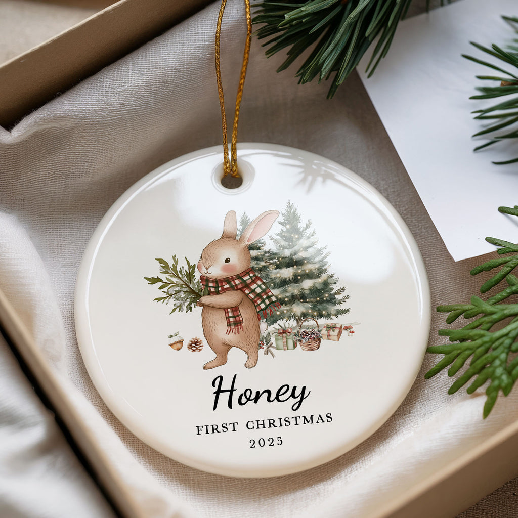 Baby's First Christmas Ornament, Rustic Bunny Rabbit