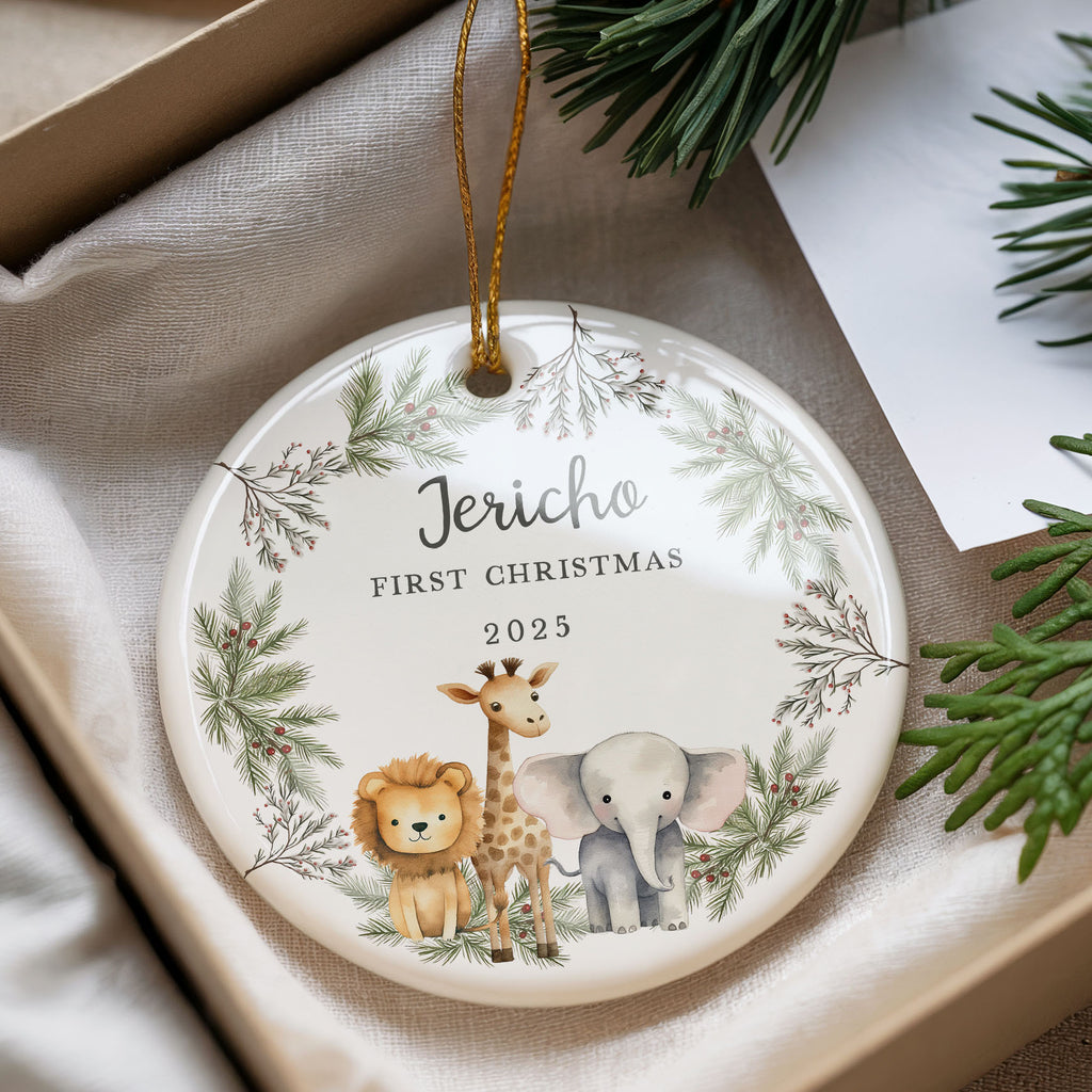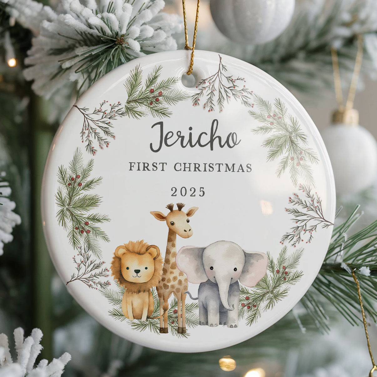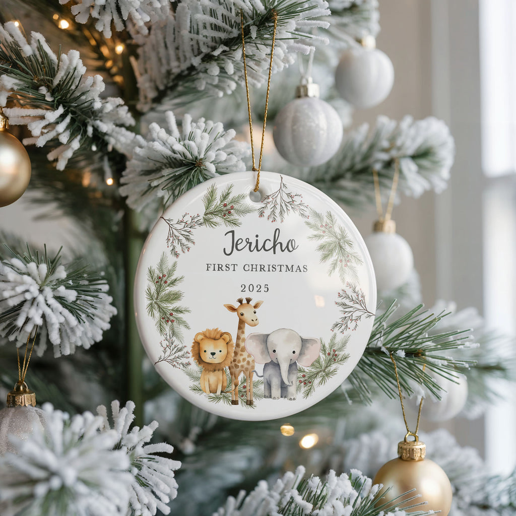 Baby's First Christmas Ornament, Safari Animals Wreath