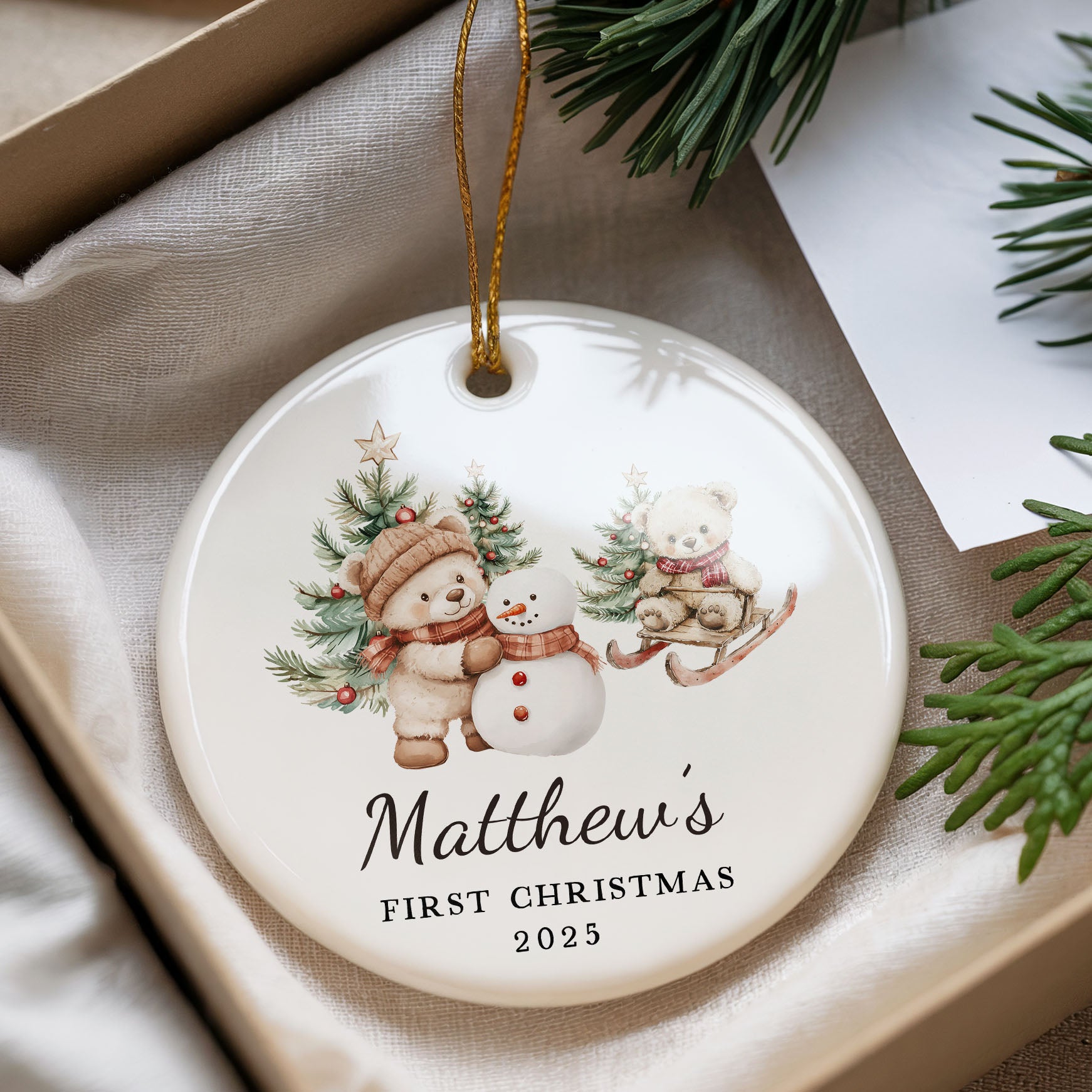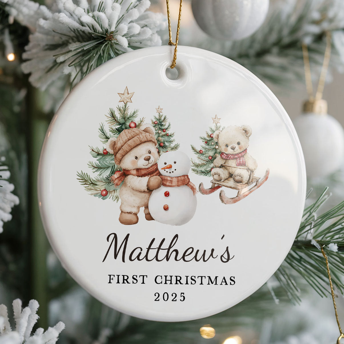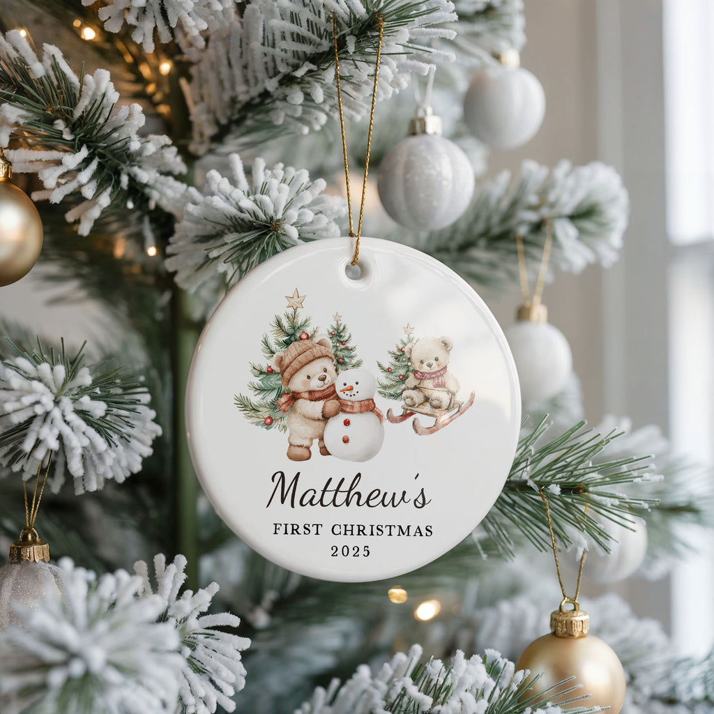 Baby's First Christmas Ornament, Teddy Bear Snow Fun