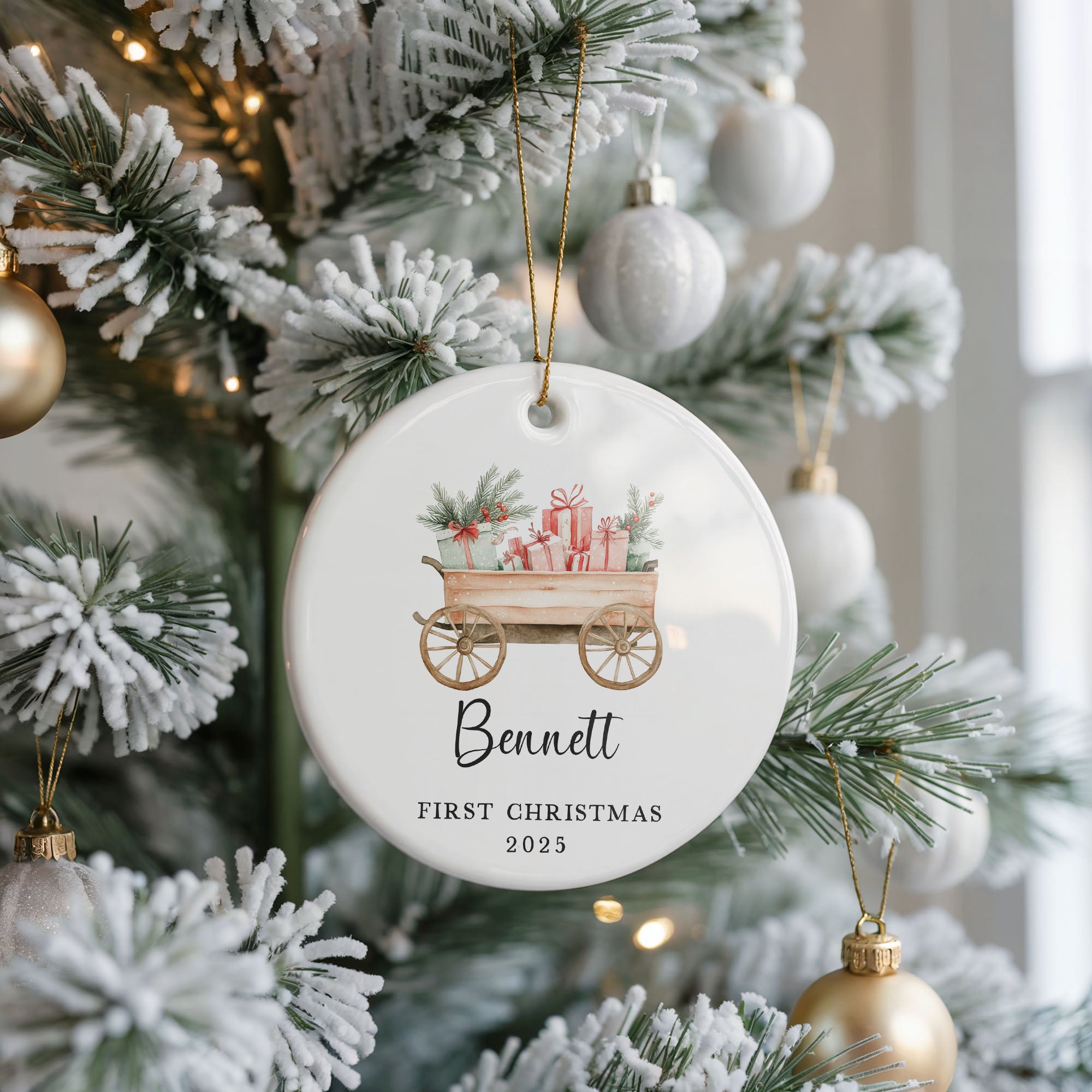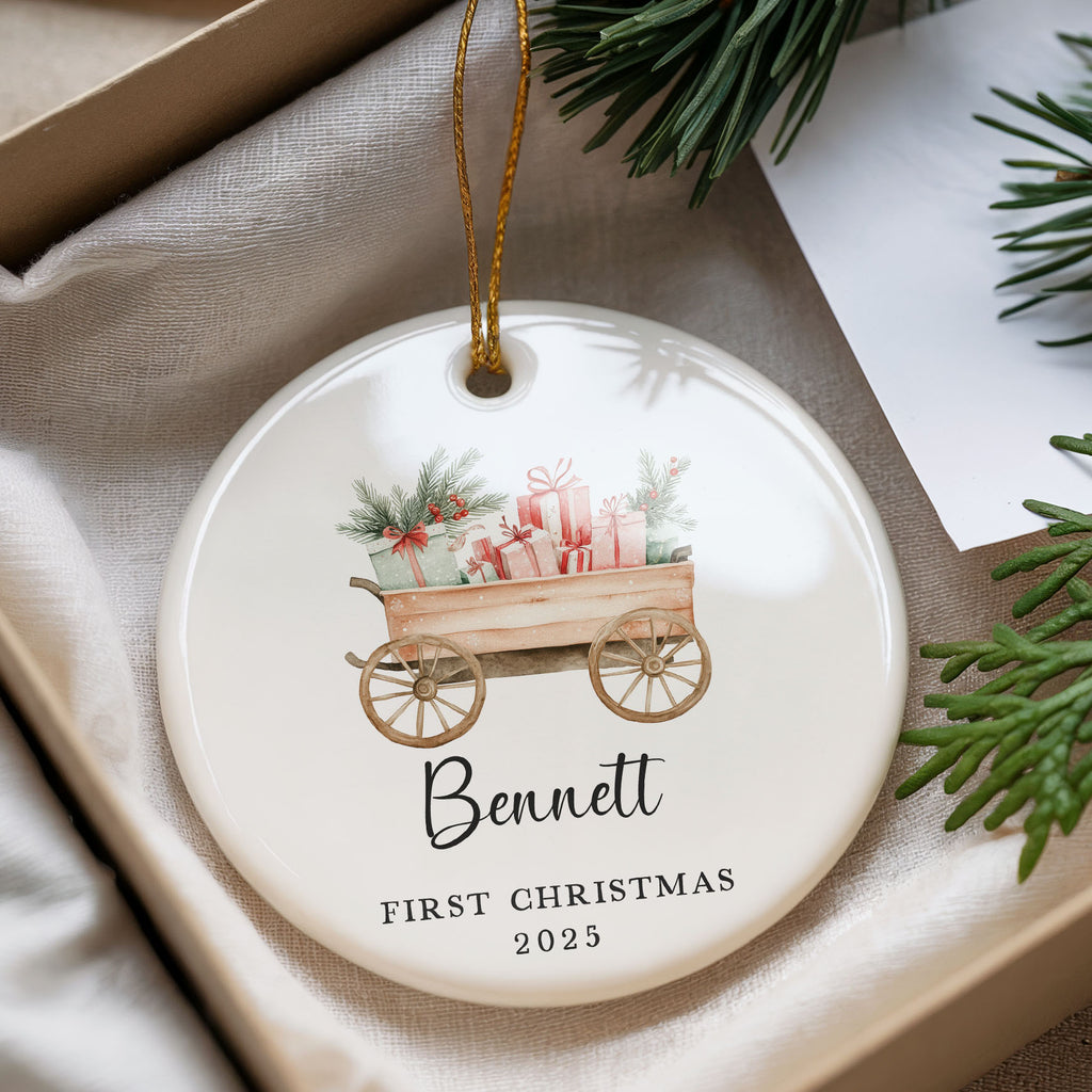Baby's First Christmas Ornament, Wagon full of presents