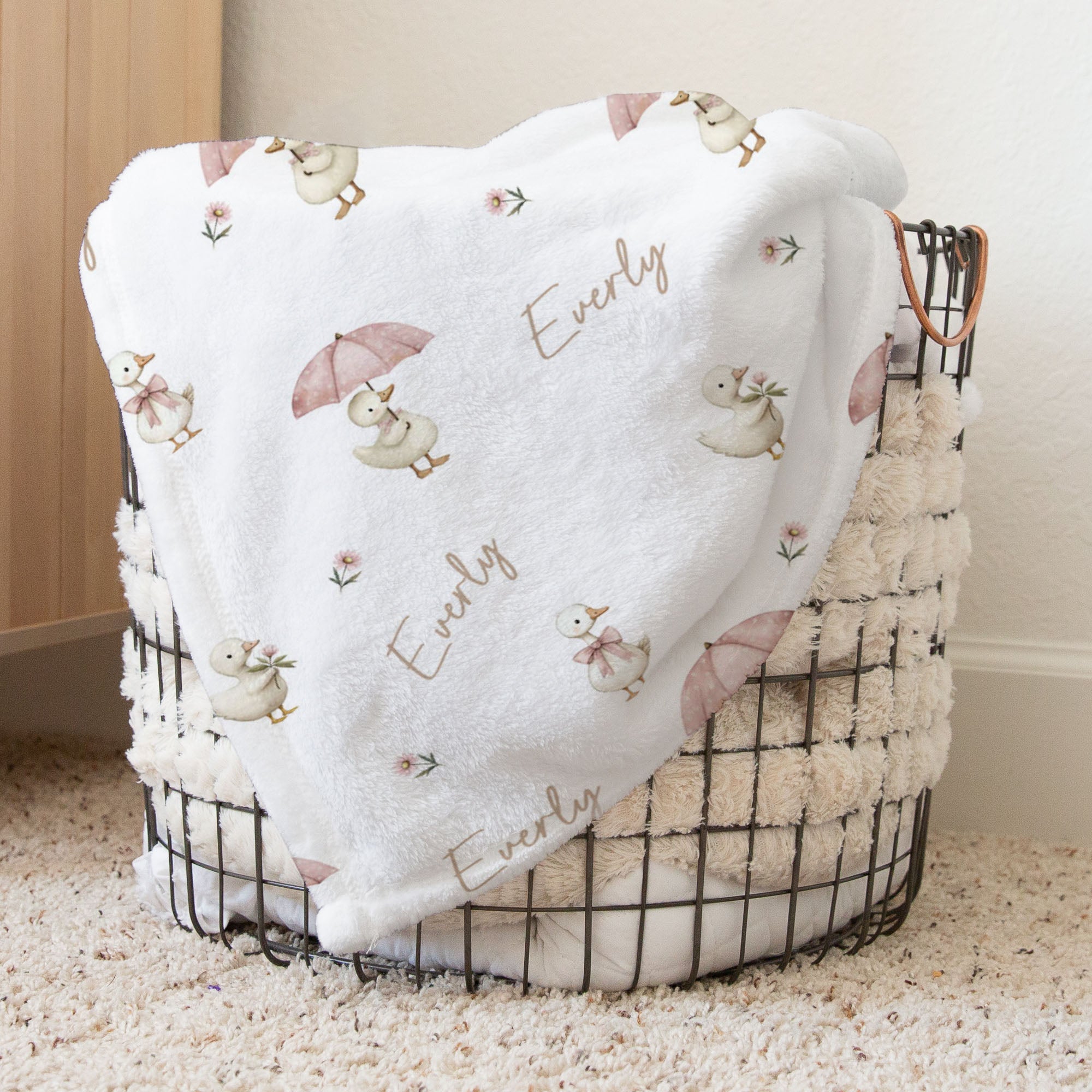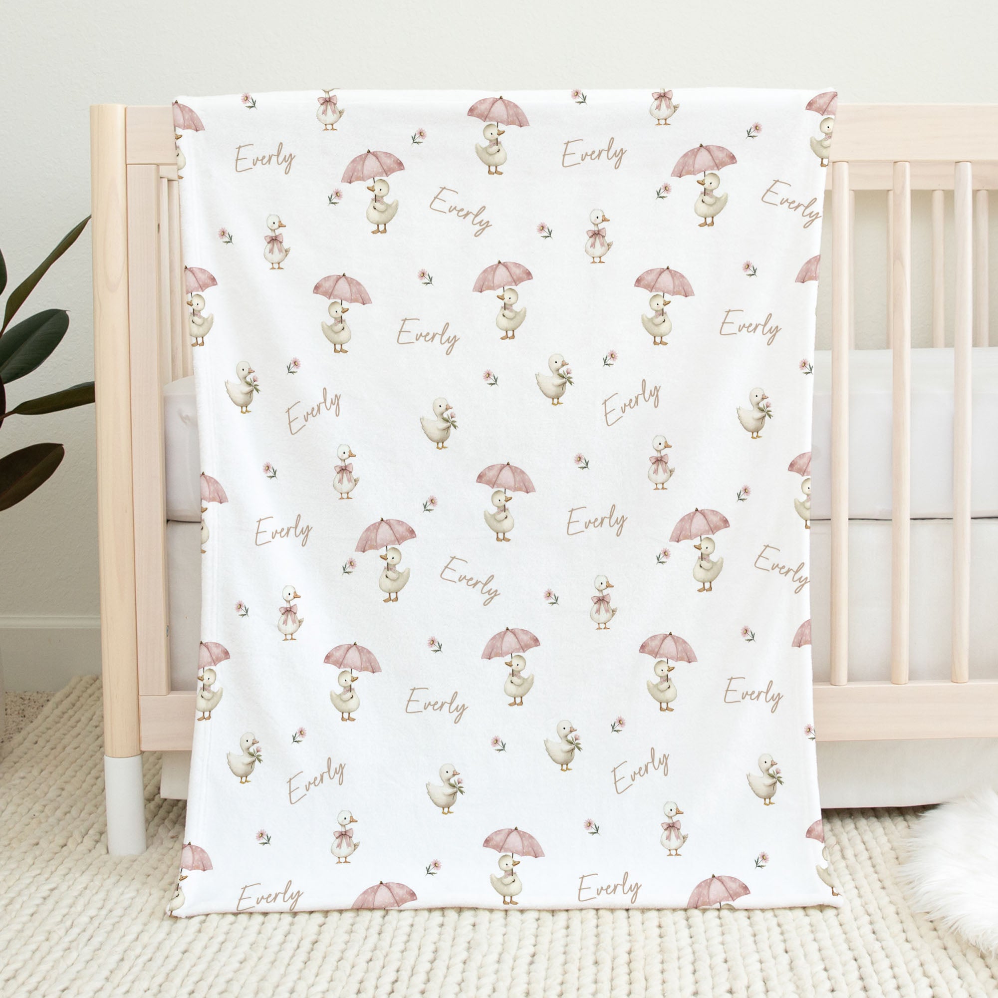 Sweet goose pink personalized baby blanket