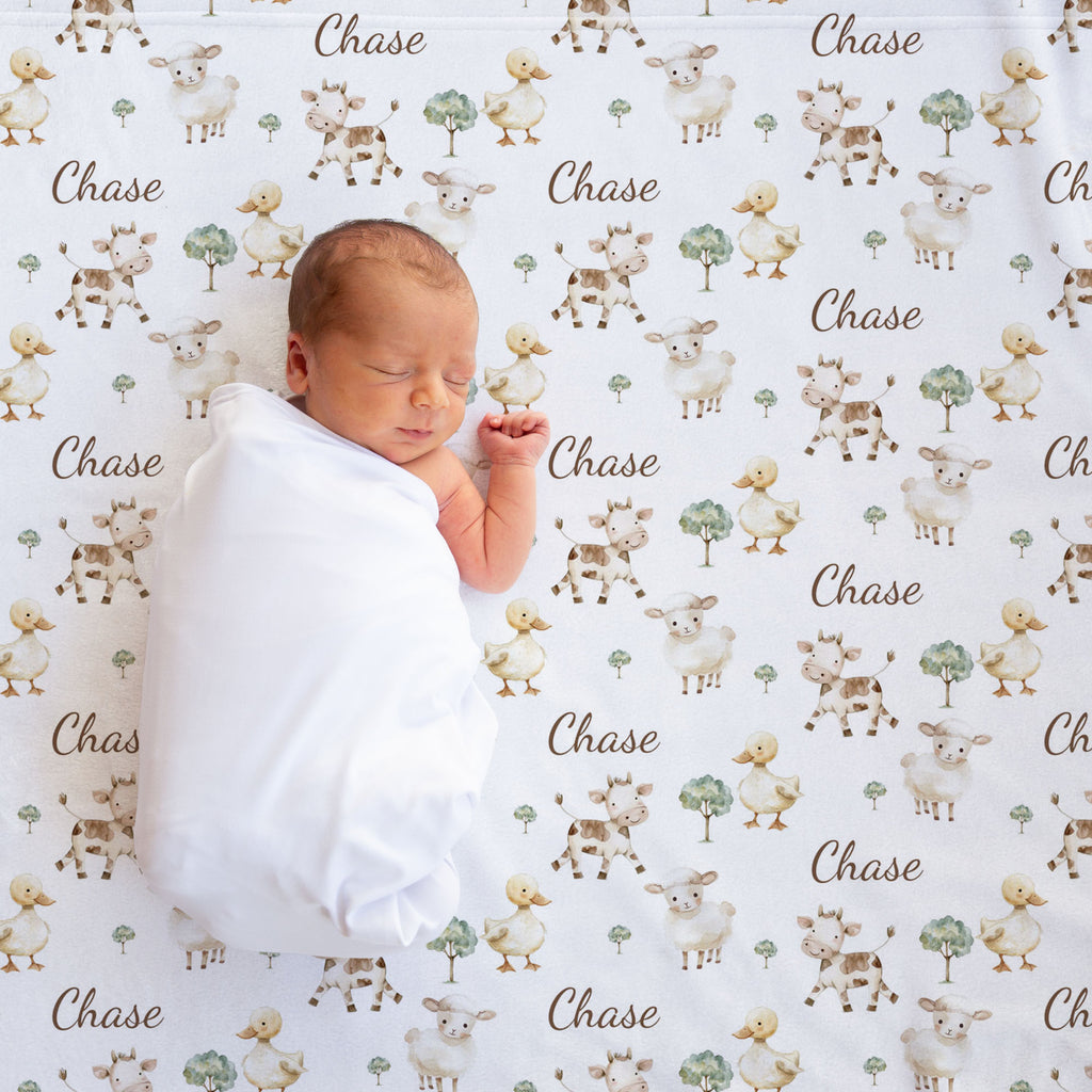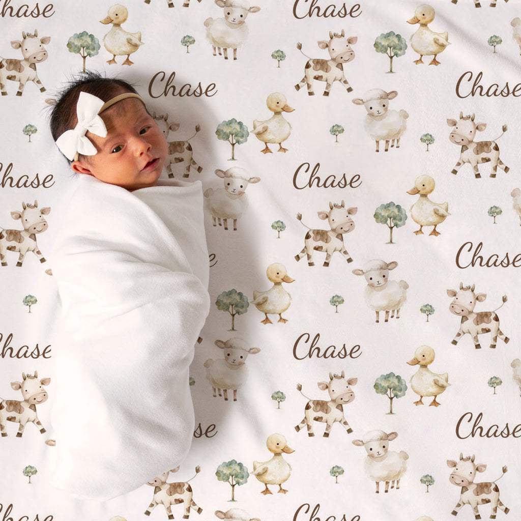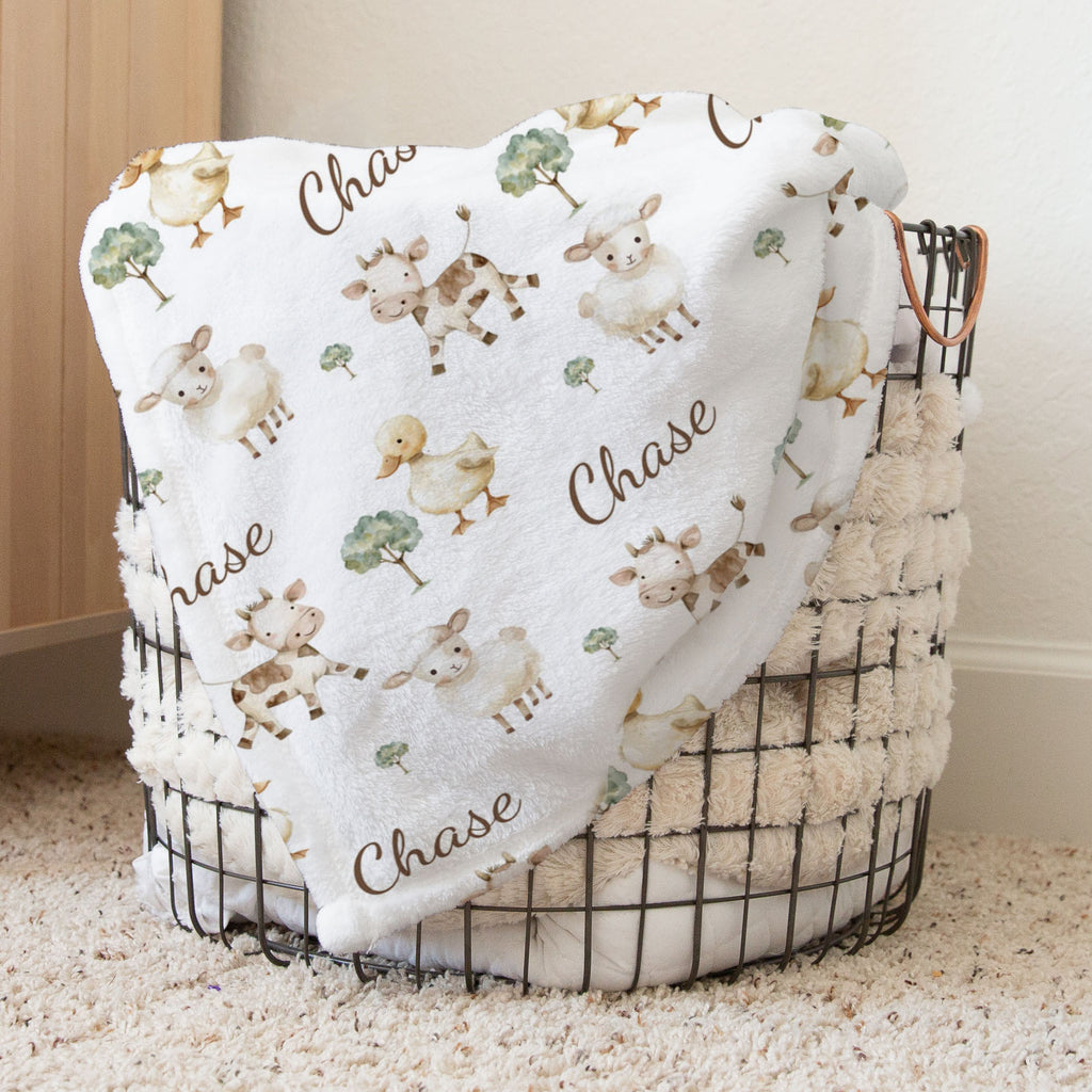 Made from a super soft fleece or minky material in a receiving blanket size of 30” x 40", this blanket is sure to become a favorite. It's perfect to wrap baby in, use in the stroller or as a one of a kind photo backdrop and makes a very popular baby shower or new baby gift.