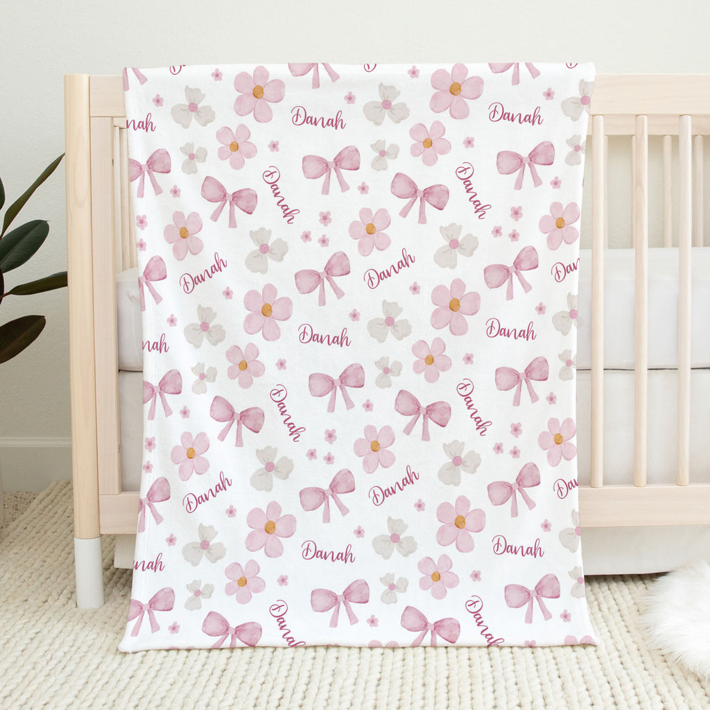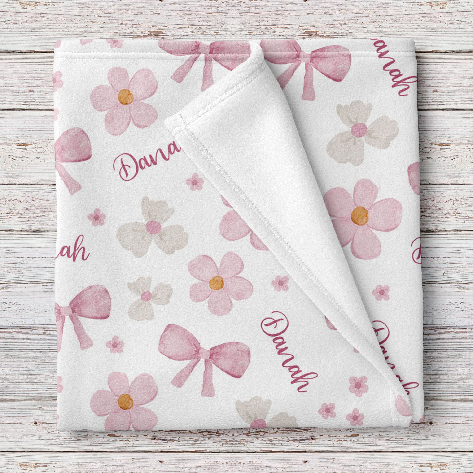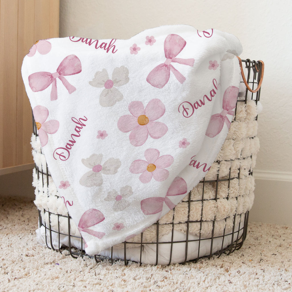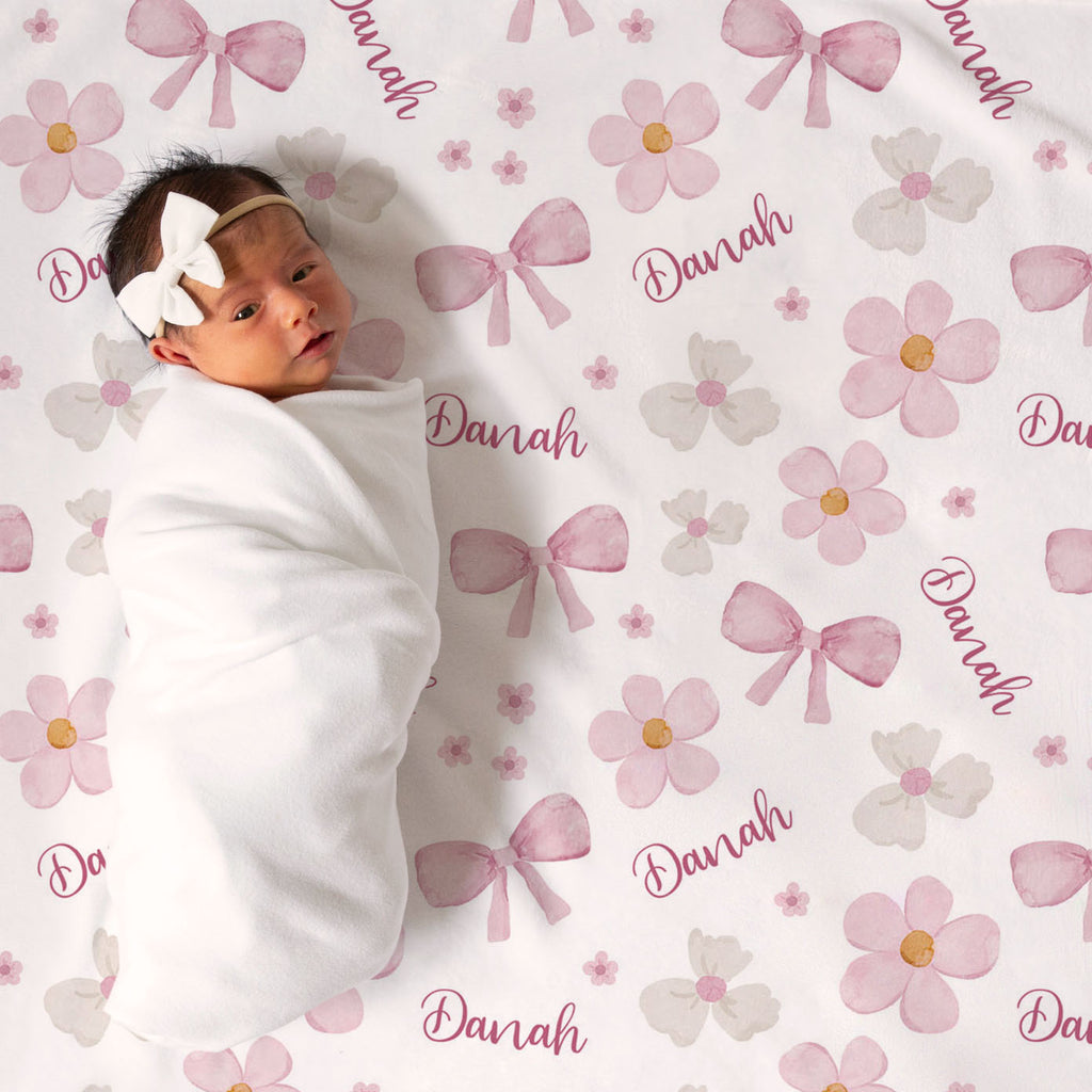 Made from a super soft fleece or minky material in a receiving blanket size of 30” x 40", this blanket is sure to become a favorite. It's perfect to wrap baby in, use in the stroller or as a one of a kind photo backdrop and makes a very popular baby shower or new baby gift.