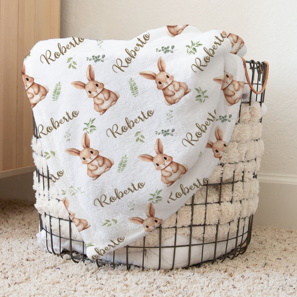 Made from a super soft fleece or minky material in a receiving blanket size of 30” x 40", this blanket is sure to become a favorite. It's perfect to wrap baby in, use in the stroller or as a one of a kind photo backdrop and makes a very popular baby shower or new baby gift.