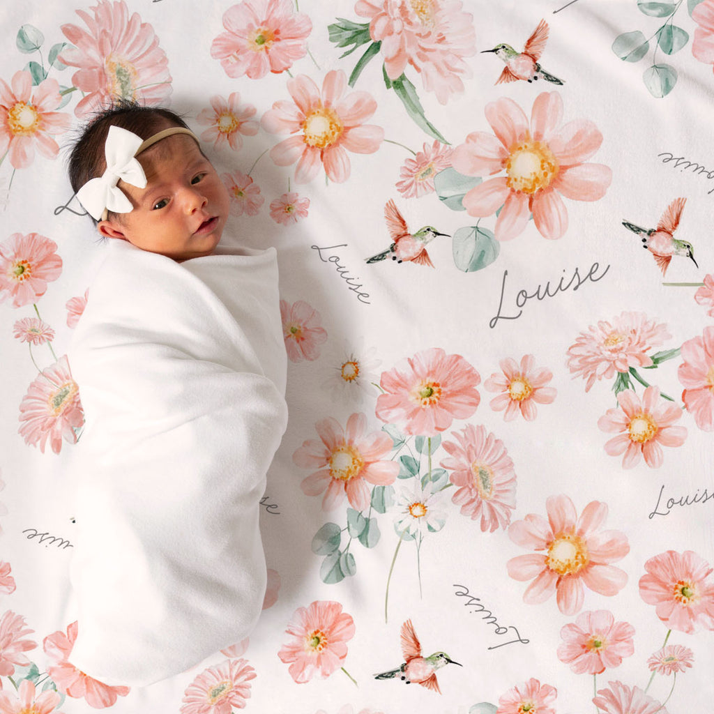 Summer Garden Floral personalized baby blanket