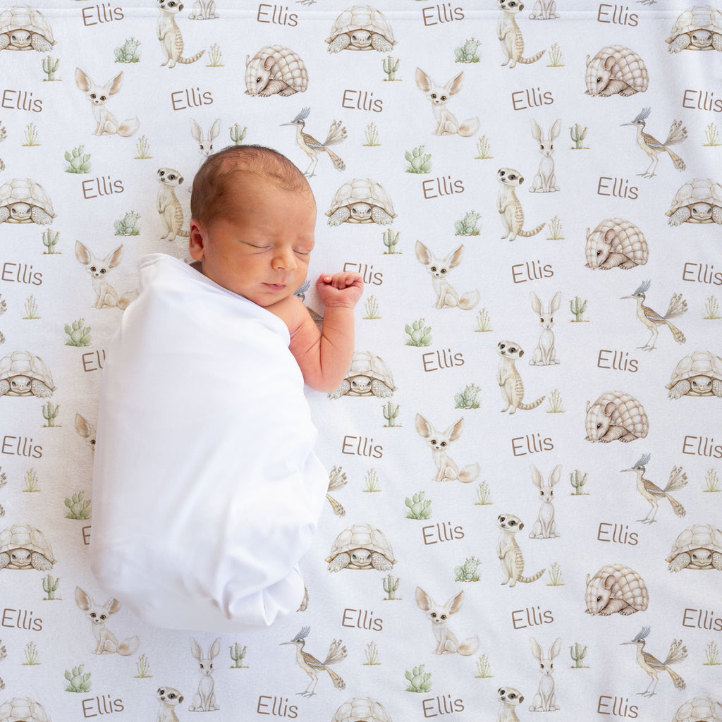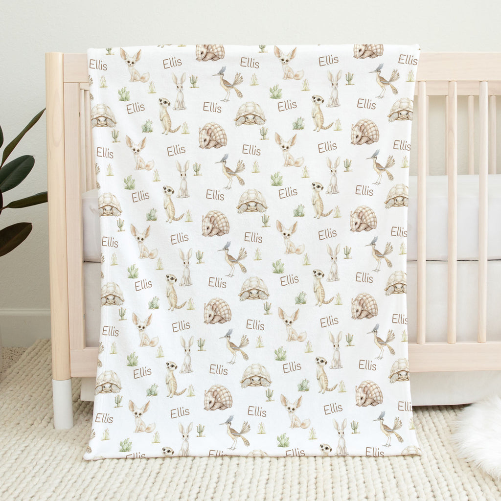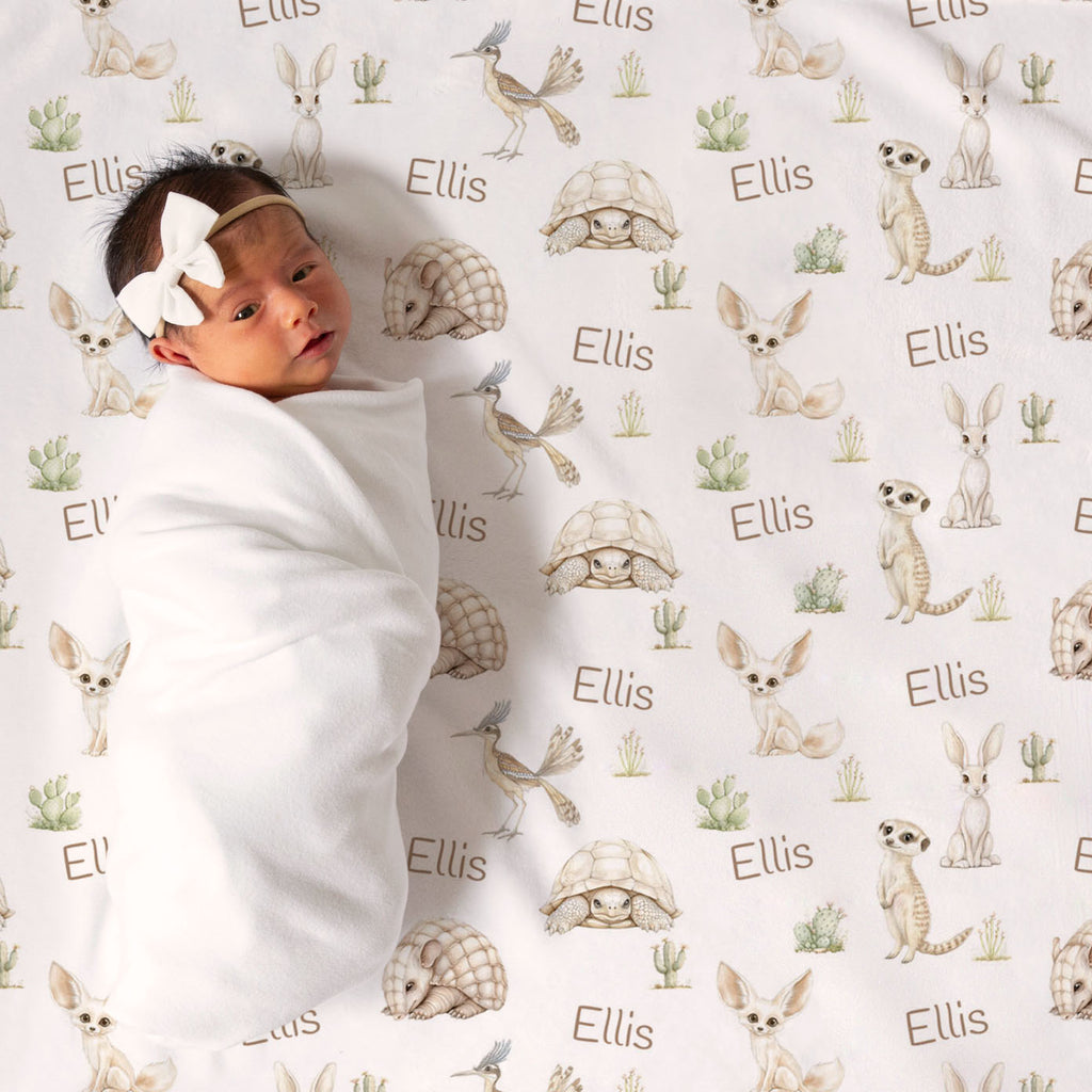 Made from a super soft fleece or minky material in a receiving blanket size of 30” x 40", this blanket is sure to become a favorite. It's perfect to wrap baby in, use in the stroller or as a one of a kind photo backdrop and makes a very popular baby shower or new baby gift.