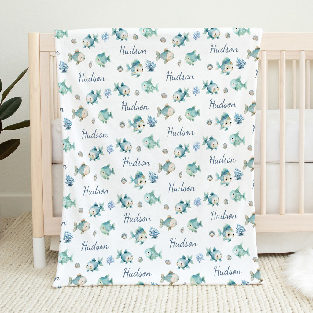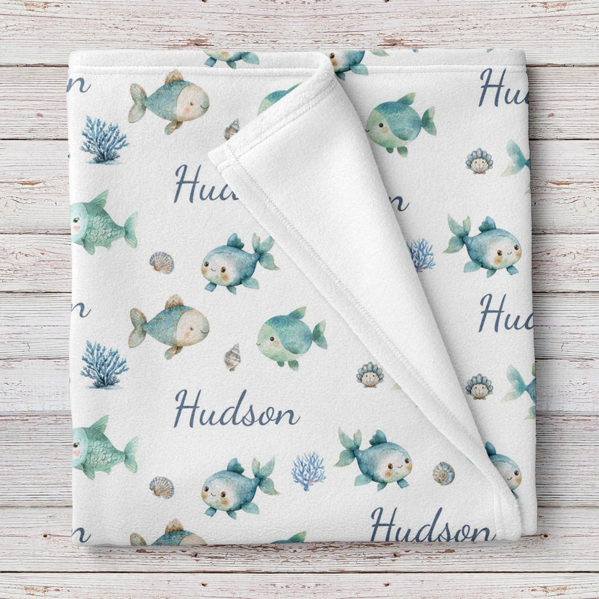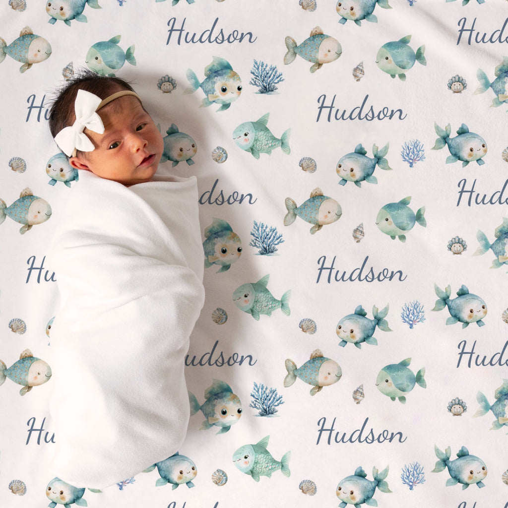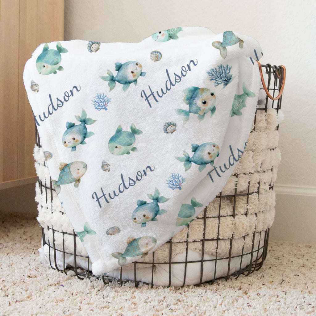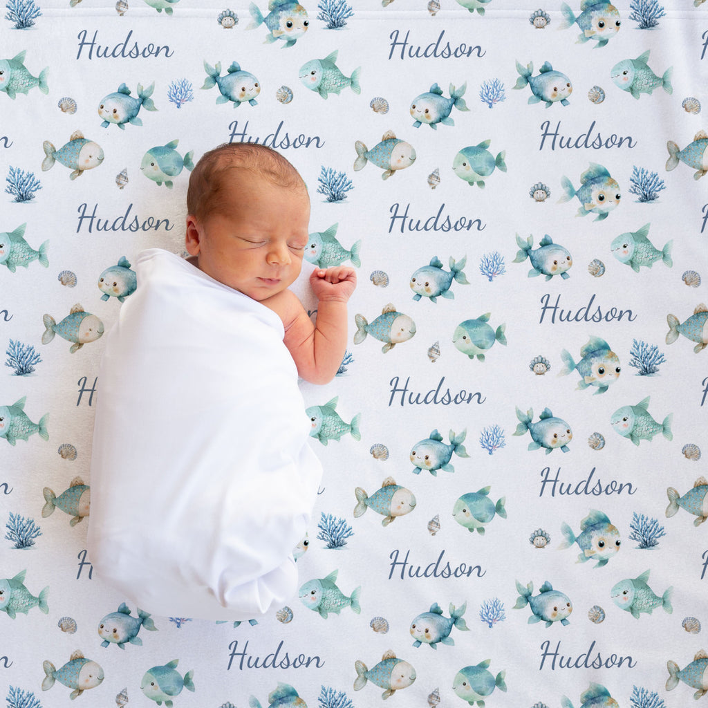 Made from a super soft fleece or minky material in a receiving blanket size of 30” x 40", this blanket is sure to become a favorite. It's perfect to wrap baby in, use in the stroller or as a one of a kind photo backdrop and makes a very popular baby shower or new baby gift.