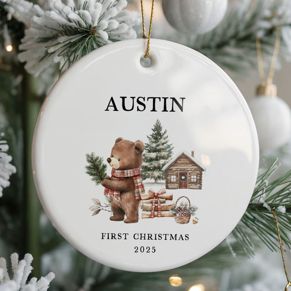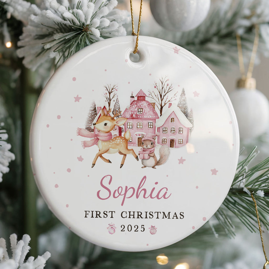 A gorgeous personalized baby blanket in a watercolor woodland animals print featuring a moose, deer, bear, squirrel and fox, personalized with baby's name.